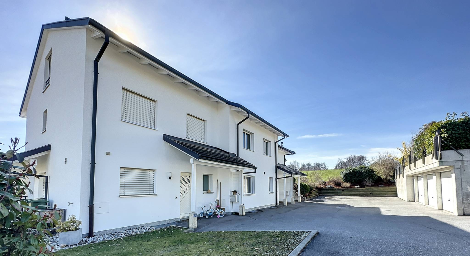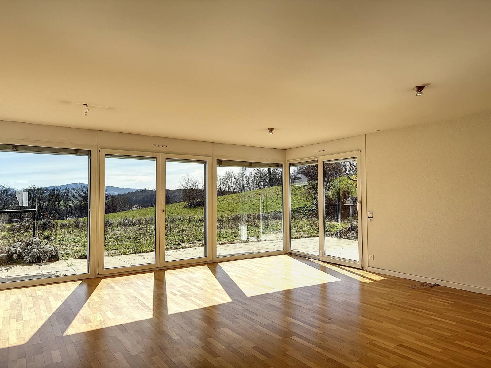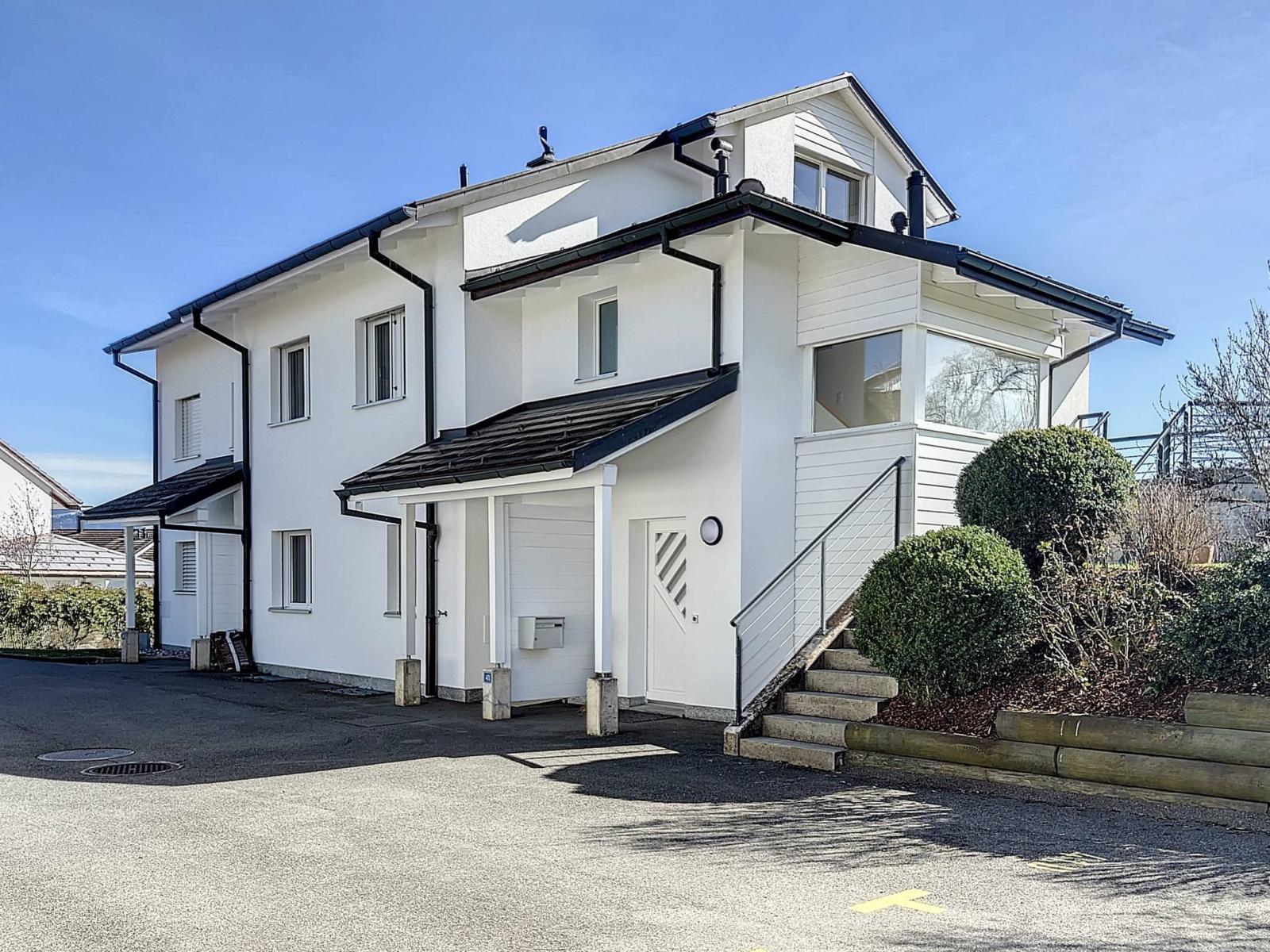 Situato in un condominio di 3 unità costruito nel 2001, questo grazioso appartamento duplex di 4,5 locali dispone di una superficie abitabile di 114 mq, completata da un seminterrato di 23 mq, oltre a una terrazza e un giardino privato di 222 mq. Si trova in una zona tranquilla e residenziale ai margini di una zona agricola.