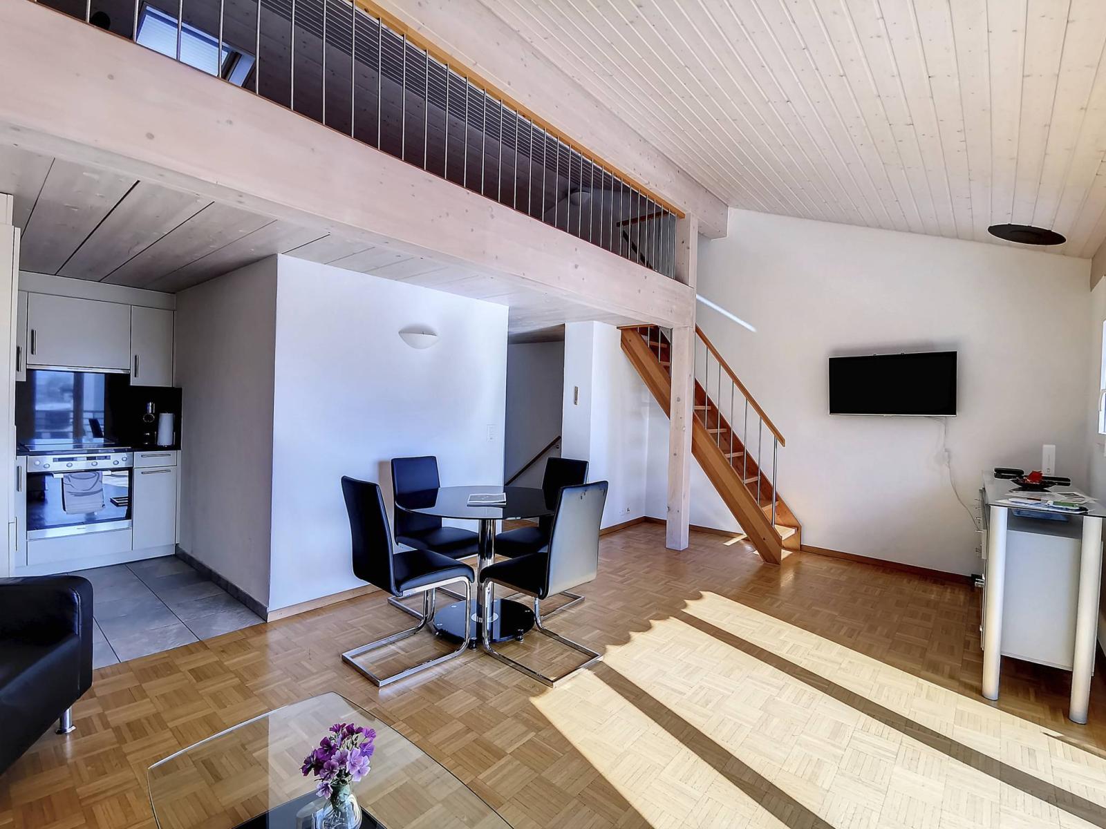 Questo spazioso appartamento di 2,5 locali + soppalco si trova al 2° piano e mansarda della rinomata Marina du Bouveret / Port-Valais. Ha una superficie di circa 80 mq (superficie DPI) ed è climatizzato.
