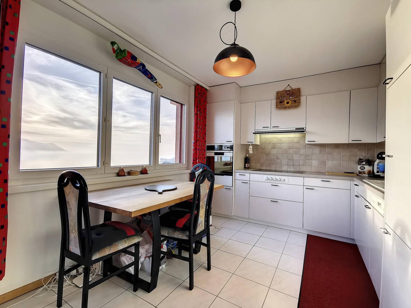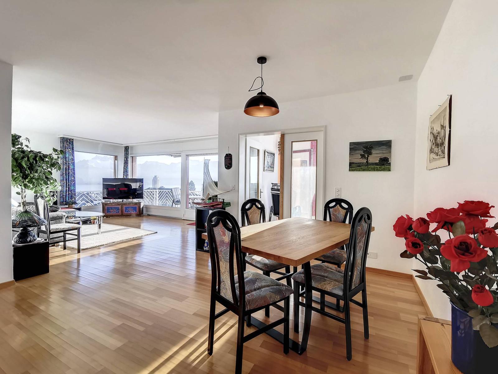 L'appartamento offre una vista mozzafiato sul Lago di Ginevra e gode del massimo soleggiamento grazie al suo orientamento sud-ovest.