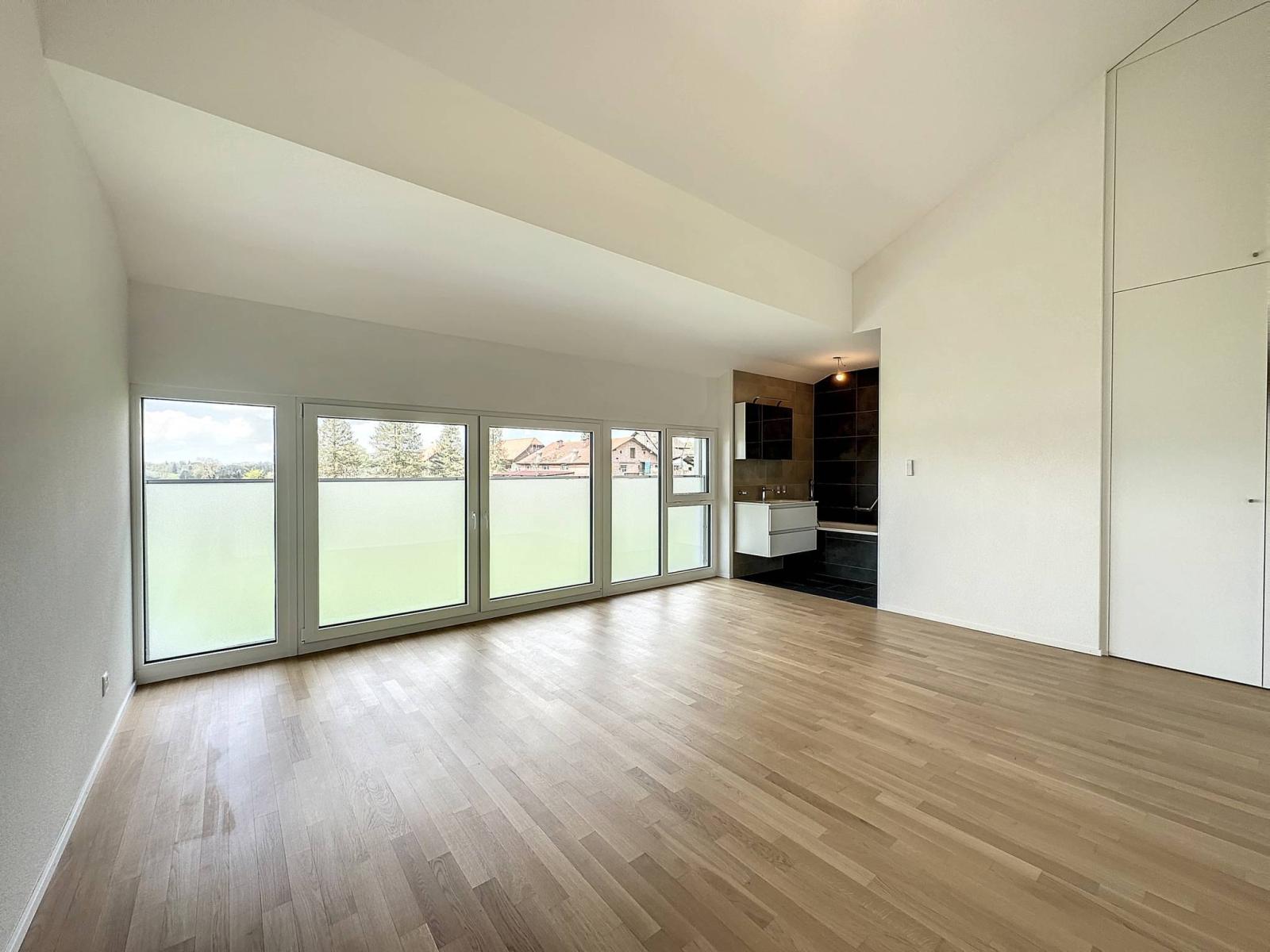 Questo ampio appartamento duplex di 3,5 locali realizzato nel 2021 in un piccolo PPE di sole 2 unità abitative, gode di una vista ampia in una zona tranquilla e residenziale.