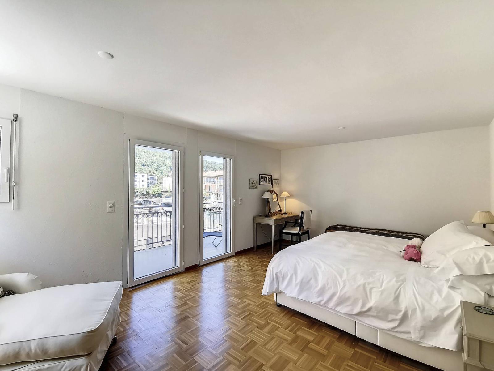 - Una camera da letto con soppalco e balcone con vista sul bacino di ormeggio;- Un bagno con doccia/WC + colonna lavatrice/asciugatrice;- Una camera con bagno/WC privato;- un balcone con vista sul canale e sul Lago di Ginevra.