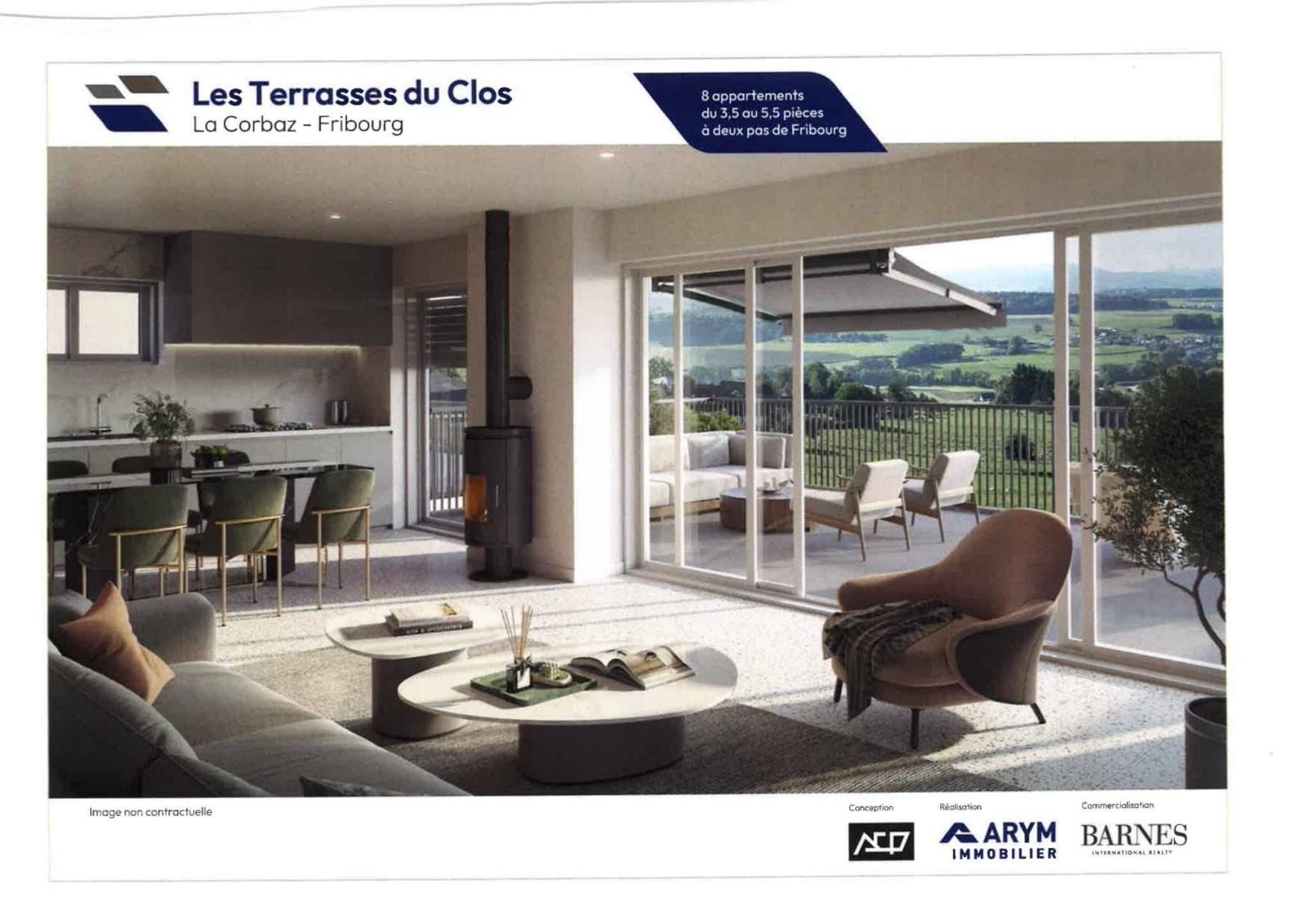 La nuova residenza “Les Terrasses du Clos” è situata in un ambiente bucolico, nel cuore dell’affascinante comune di La Corbaz, a metà strada tra Courtepin e Friburgo.