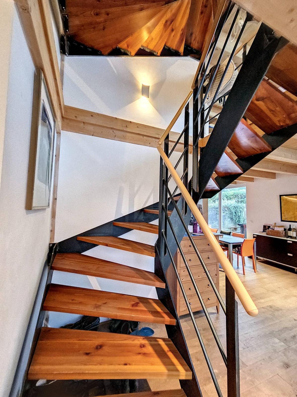 È una casa calda che beneficia di materiali di qualità con molto fascino e carattere (come le travi del 1821, un bel pavimento in parquet antico, pietre a vista alle pareti o anche una stufa a legna). La ristrutturazione ha permesso di dare una vera spinta di modernità con un'apprezzabile luminosità che emerge dai lucernari (vetrate), parte dei quali si affaccia sullo spazio esterno "giardino e terrazza" nascosto alla vista, accogliente e molto accogliente con un autentico vecchio muro di viti. Un capannone da esterno è molto pratico come spazio di stoccaggio.