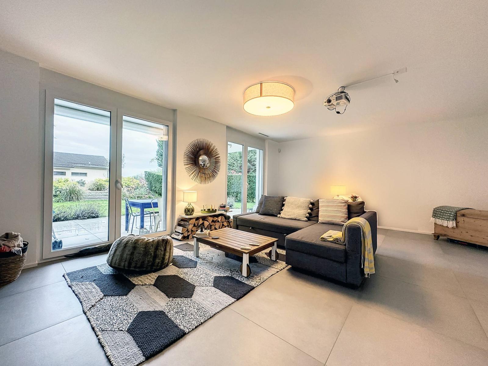 Costruita nel 2014, la struttura offre uno spazio abitativo confortevole per tutta la famiglia. L'edificio beneficia di un'architettura contemporanea con colori sobri e raffinati, materiali e finiture di prima qualità che aggiungono un tocco di eleganza. Grazie alle grandi finestre che massimizzano la luce solare naturale, l'atmosfera è luminosa e calda in ciascuna delle spaziose camere.