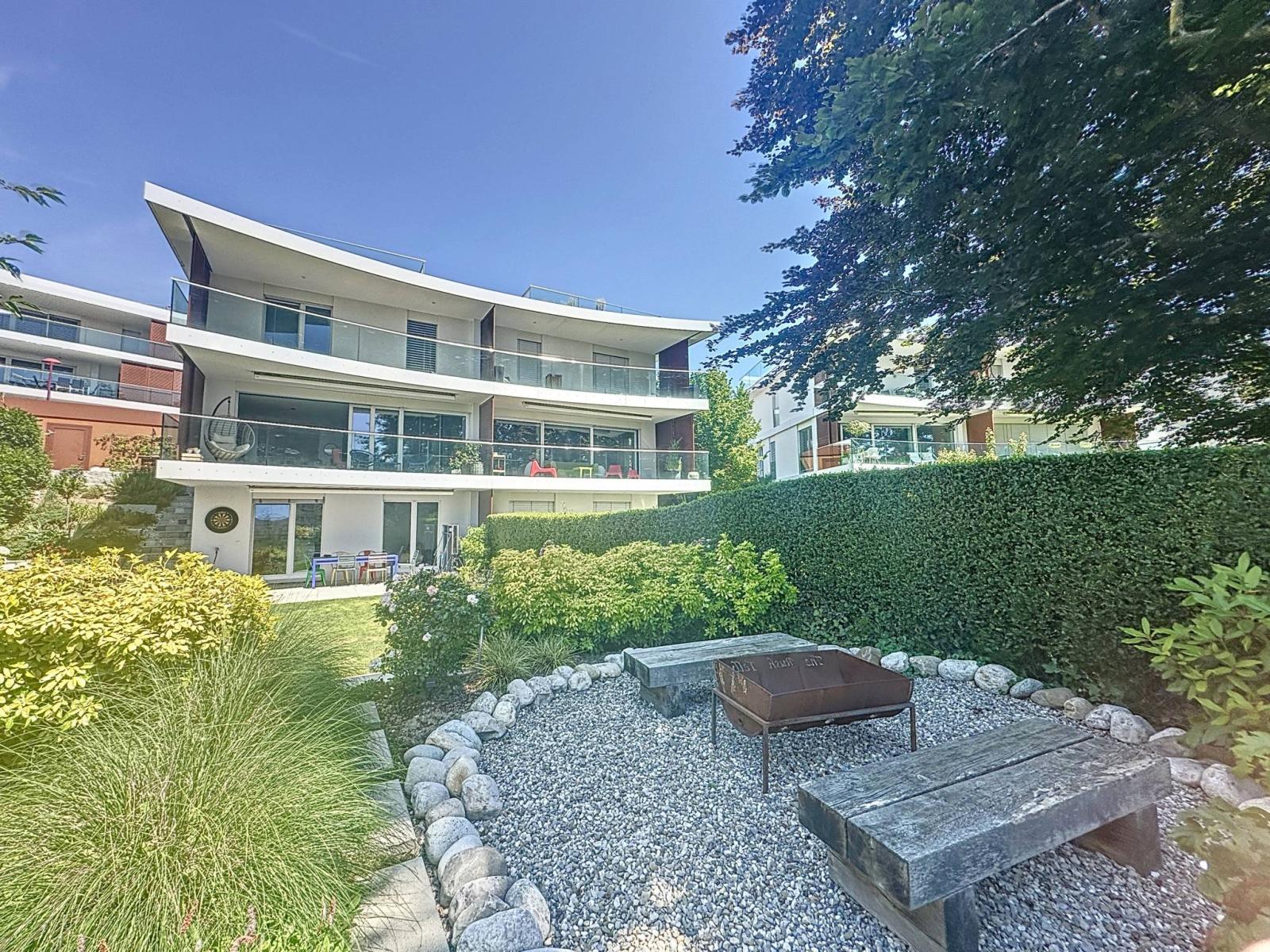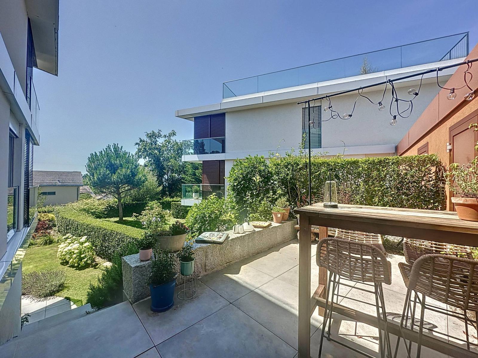 Distribuita su tre livelli, questa rara proprietà in vendita ha una superficie abitabile di circa 230 mq circondata da un vasto giardino perfettamente curato di 245 mq oltre ad un bellissimo terrazzo di 50 mq. In più, la terrazza panoramica sul tetto offre una magnifica vista sulla vegetazione, con il Lago di Ginevra e le montagne sullo sfondo.