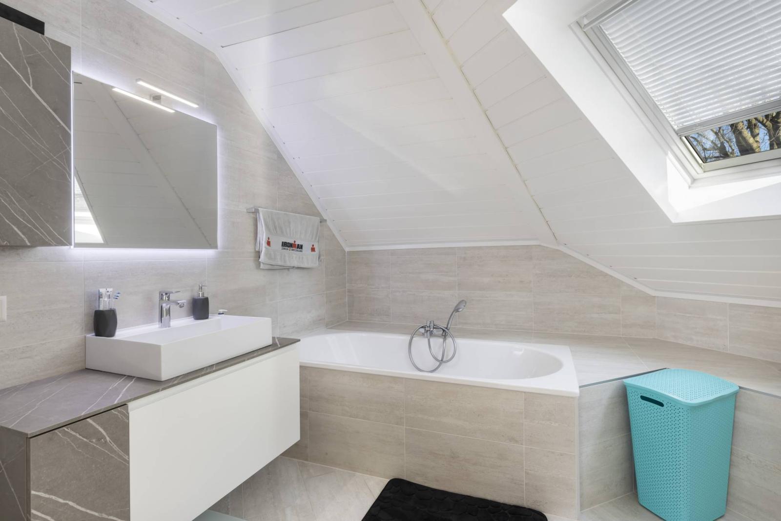 Il primo piano offre quattro camere da letto, una delle quali dotata di ripostiglio personalizzato, oltre a un moderno bagno con doccia italiana. L'accesso al sottotetto tramite botola offre ulteriore spazio versatile.