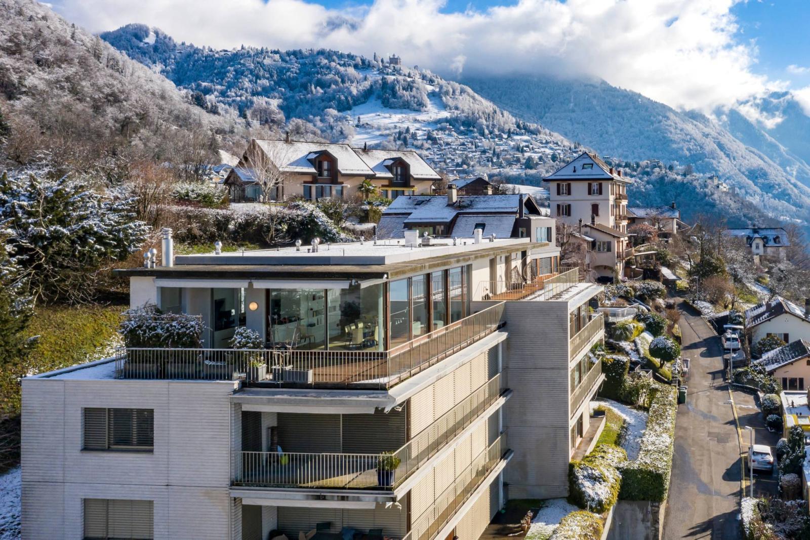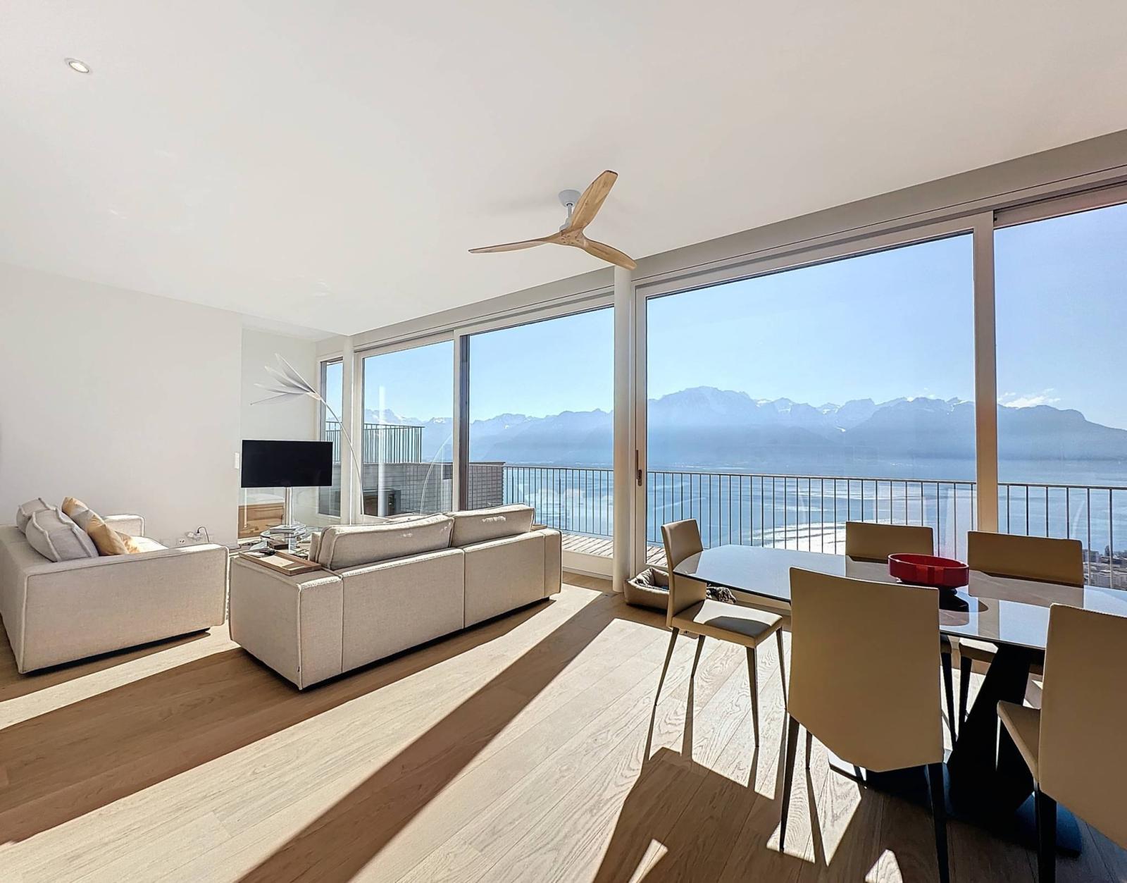 Situato nell'incantevole villaggio di Chernex, sulle alture di Montreux, questo magnifico attico occupa una posizione dominante in un ambiente molto tranquillo e idilliaco, circondato dal verde.