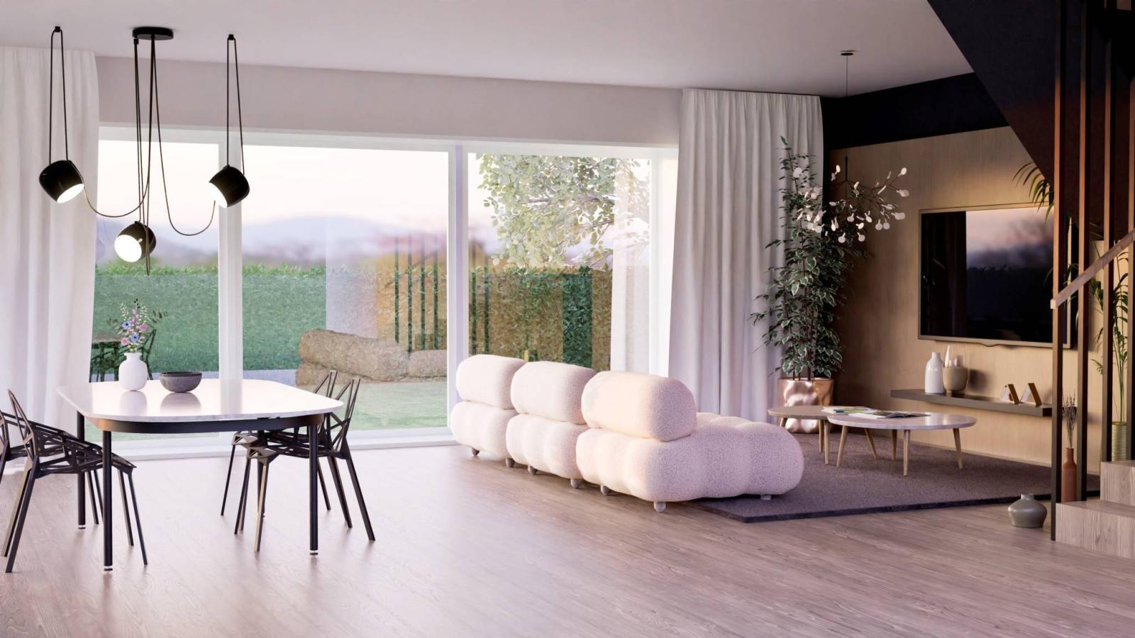 Lo stile esterno è in stile villaggio e gli interni decisamente moderni. Beneficiando dei più recenti standard costruttivi: riscaldamento a pavimento tramite pompa di calore con sonda geotermica; tapparelle elettriche per finestre a bovindo; pannelli fotovoltaici; tripli vetri, ecc.). Approfitta di un acquisto fuori programma con scelta dei materiali (secondo i budget della descrizione tecnica e dei fornitori).