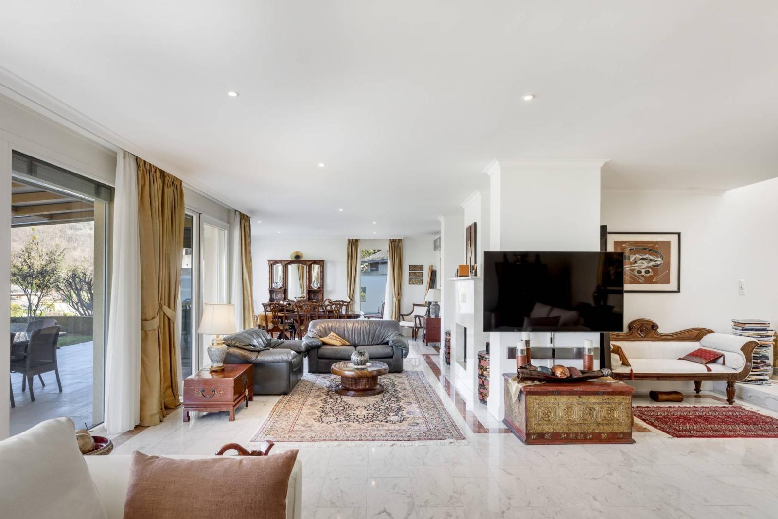 - Ampio spazio composto dal soggiorno, dalla zona camino e dalla sala da pranzo con accesso al terrazzo.