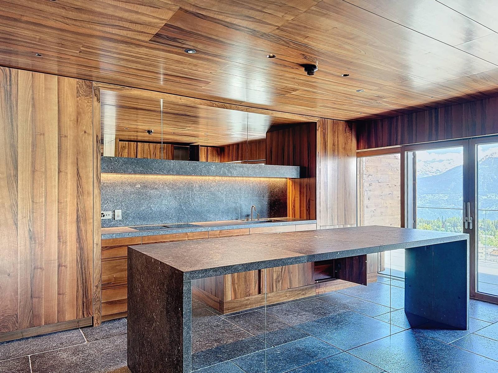 RARO ED ECCEZIONALE - questo magnifico attico duplex, completamente arredato e dotato di materiali di altissima qualità, beneficia di una vista eccezionale sulla località e sulle Alpi.