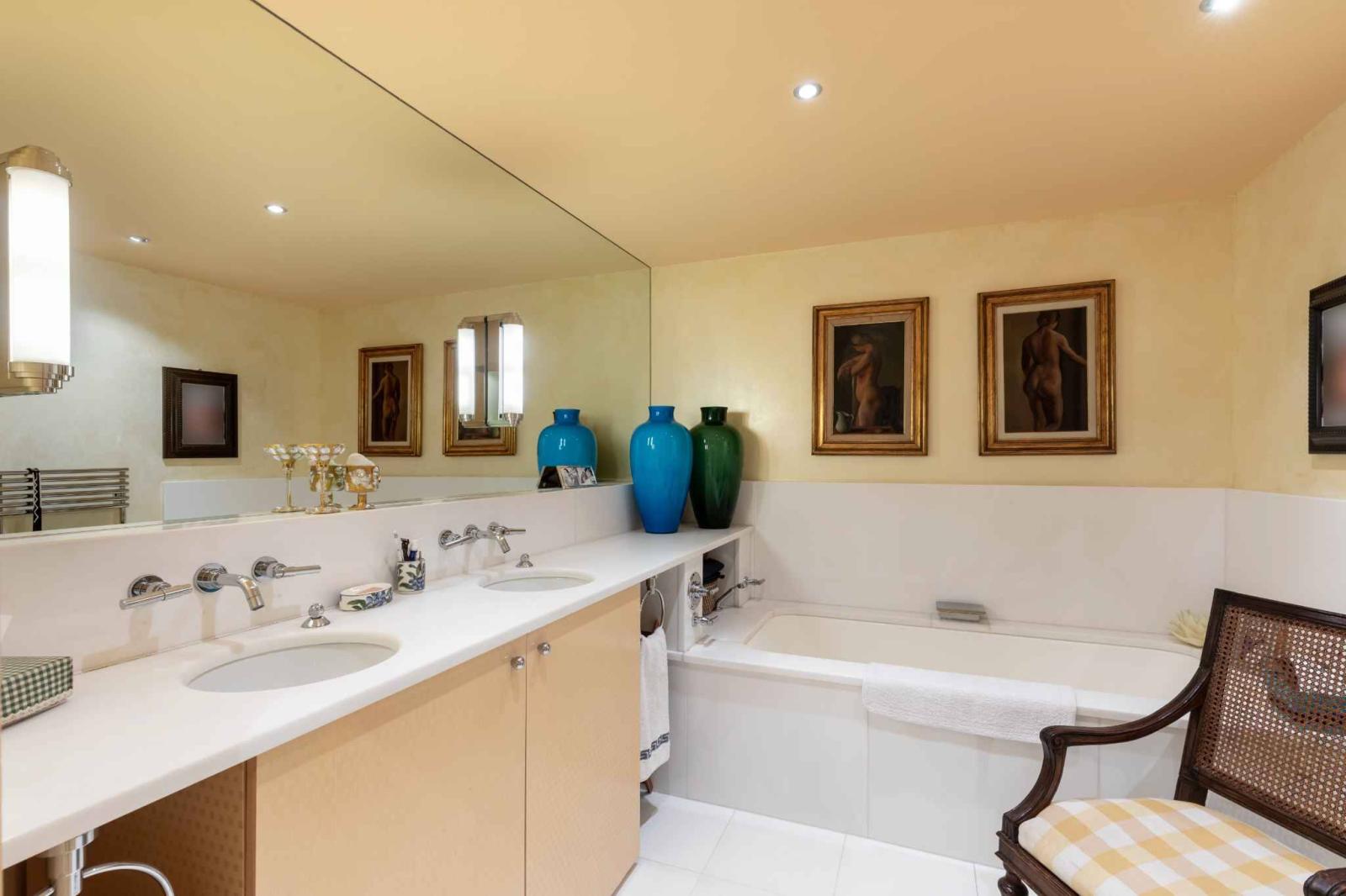 La zona notte offre 4 splendide camere da letto con bagno privato e 4 bagni. Una delle camere è attualmente adibita a ufficio.