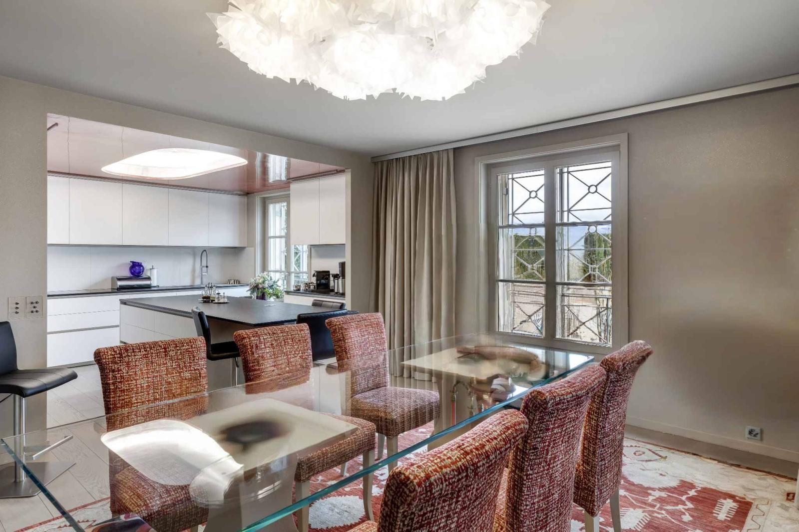 La zona giorno offre un ampio ingresso con bagno per gli ospiti, un grande soggiorno, una sala da pranzo e una magnifica cucina a vista sul soggiorno.