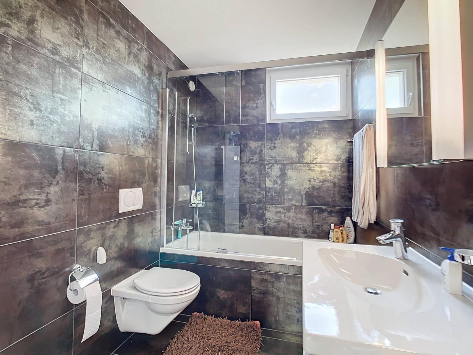 Per garantire comfort e privacy, questo appartamento dispone di un bagno con vasca e colonne di lavaggio, un bagno con doccia italiana e WC.