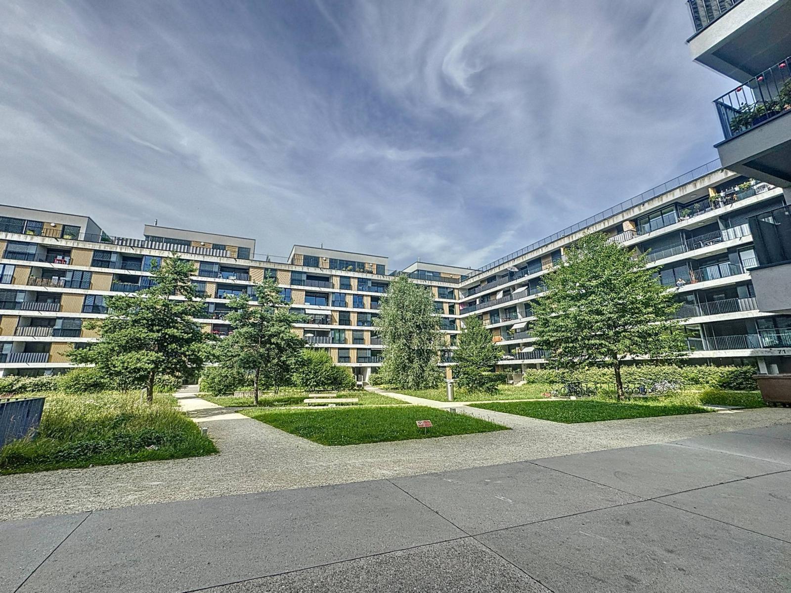 La palazzina, regolarmente manutenuta, dispone di parti comuni ben curate e di un ampio parco condiviso con altri immobili del quartiere.