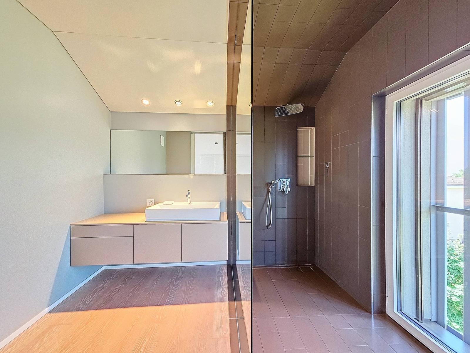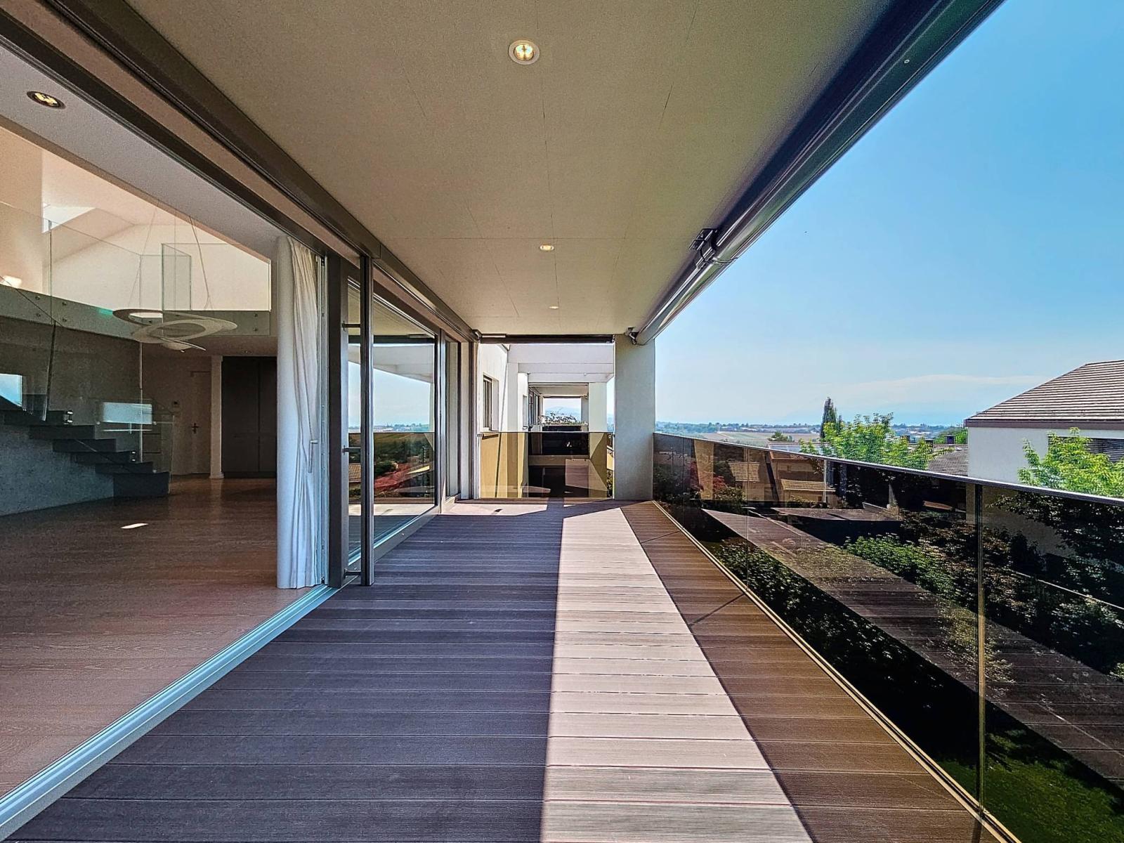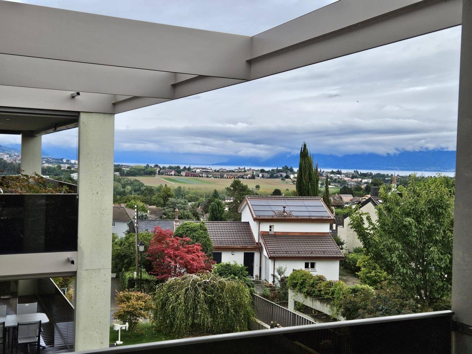 Il balcone offre una bella vista sul verde e sul lago verso Losanna.