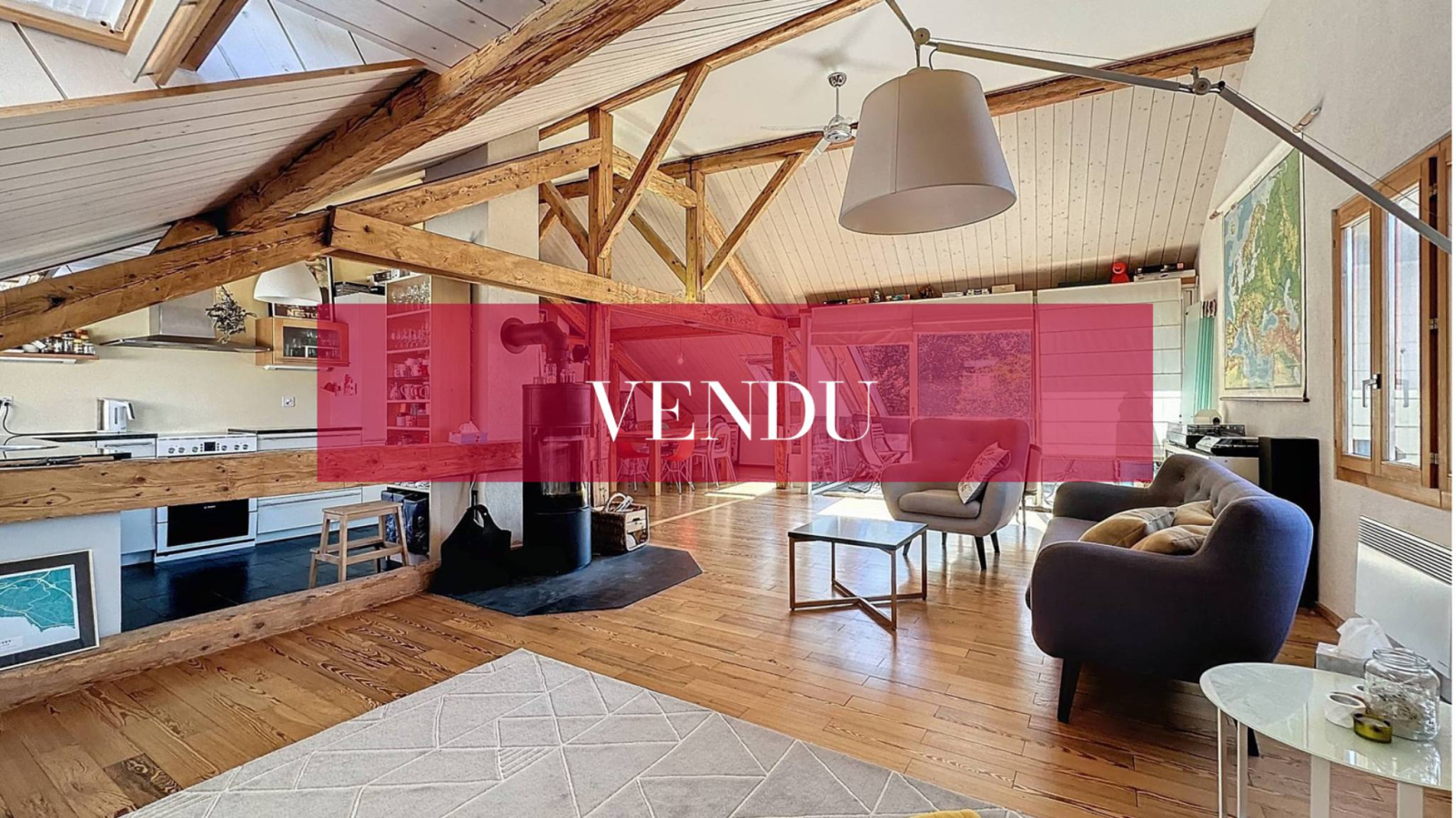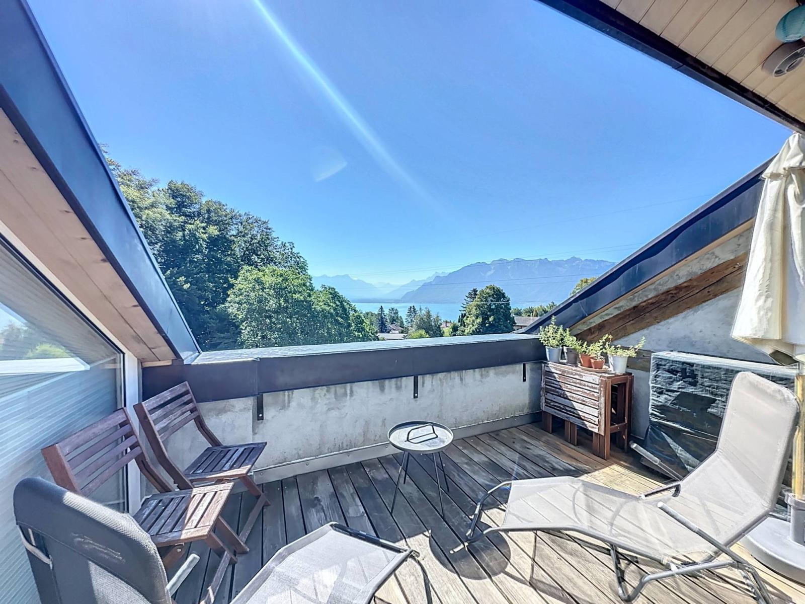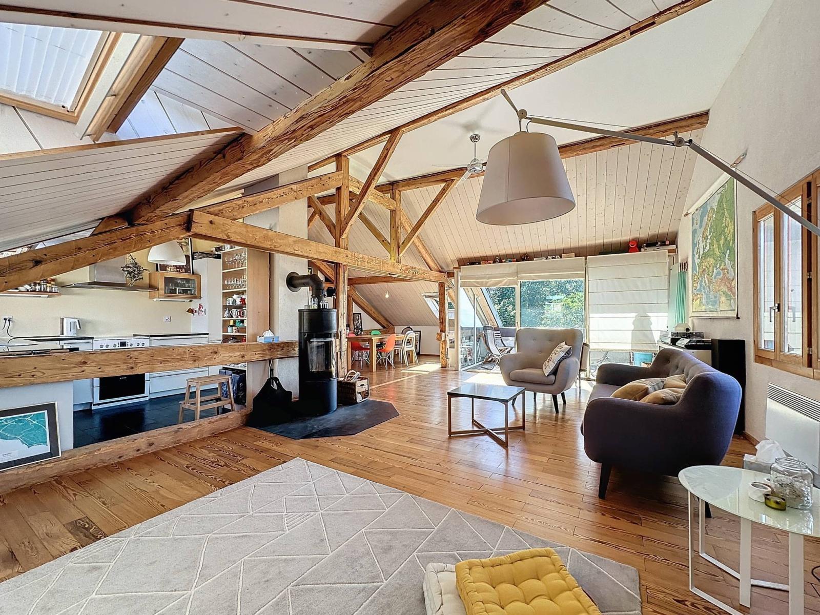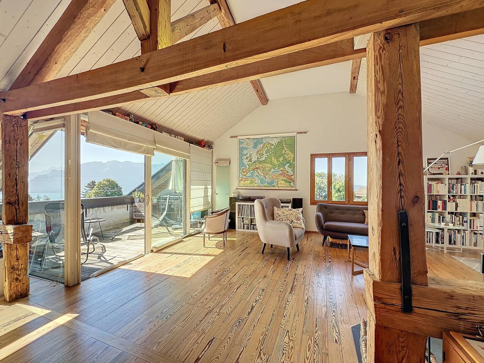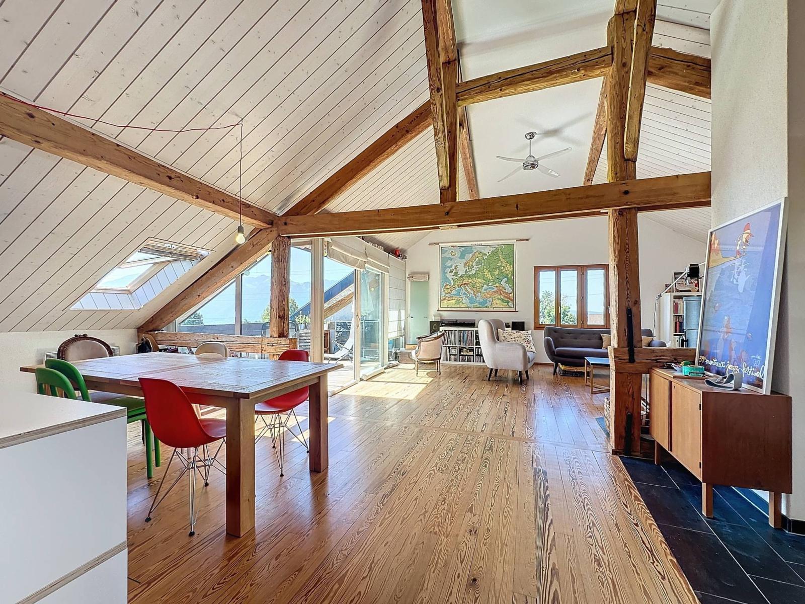 Questo spazioso attico della superficie interna di 95 mq occupa l'intero ultimo piano di un condominio di quattro unità. Realizzato nel 2010 con materiali di pregio, dispone di una camera da letto, un soppalco, una cucina a vista e un luminoso soggiorno prolungato da un balcone di 10 mq con vista lago.