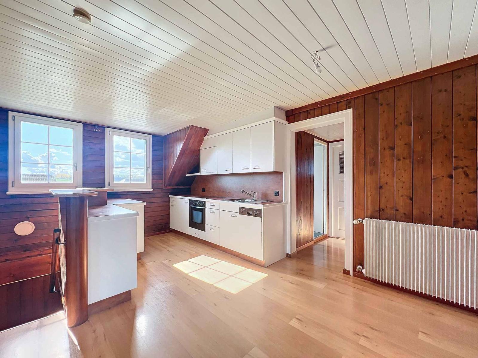 La mansarda ha accesso indipendente. Al loro interno è presente un appartamento che attualmente è integrato nella casa, ma che potrebbe essere reso completamente indipendente. Si compone di una cucina attrezzata, 2 piacevoli camere da letto e un bagno con doccia con lucernario. Una mansarda isolata ma non riscaldata potrebbe anche essere trasformata in ulteriore spazio abitativo.