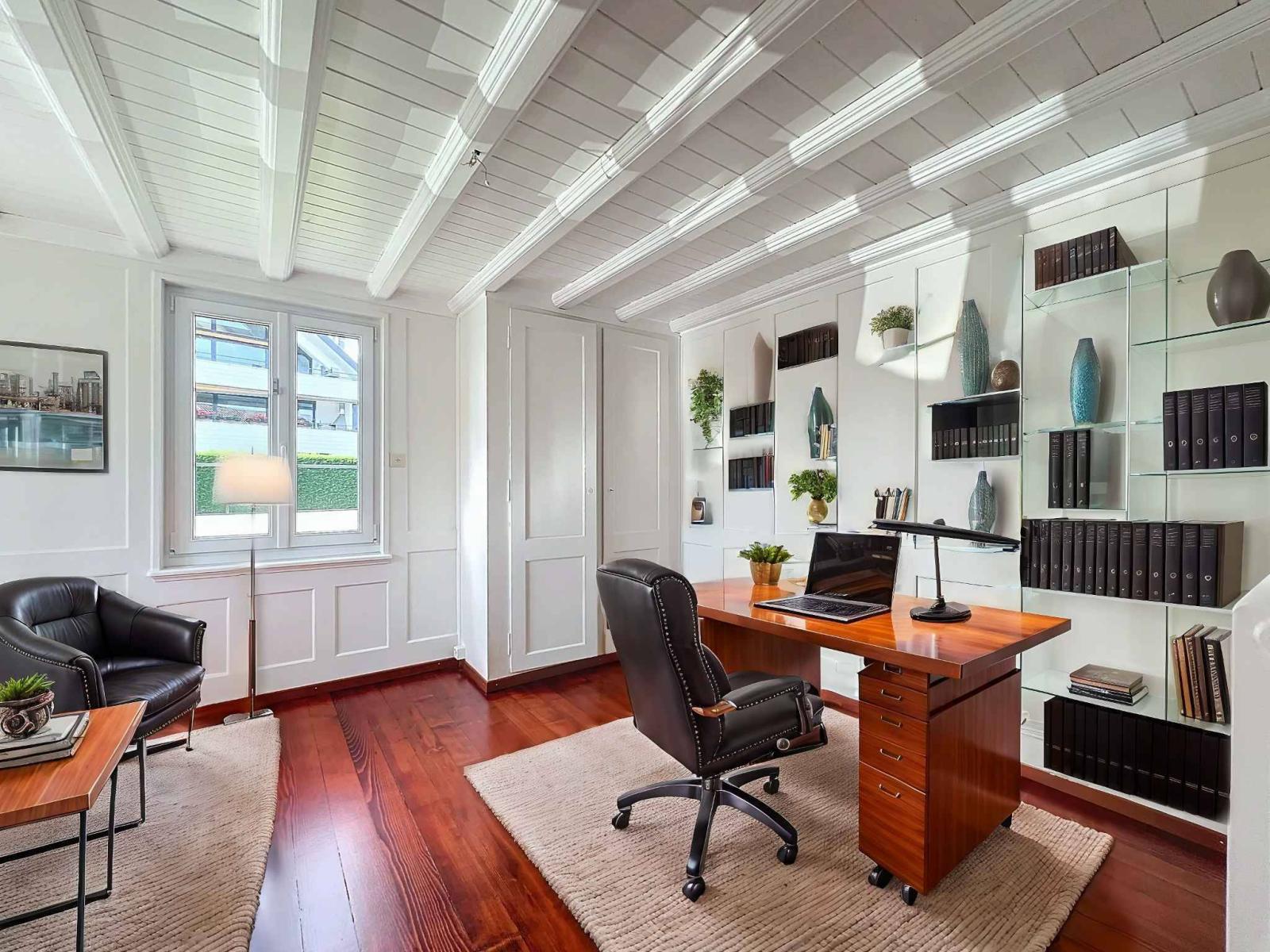 Al piano terra, un bellissimo ingresso con WC ospiti conduce ad un ampio soggiorno e ad una grande cucina con vera e propria zona pranzo. Un ufficio e una lavanderia/locale tecnico con accesso esterno completano questo livello.