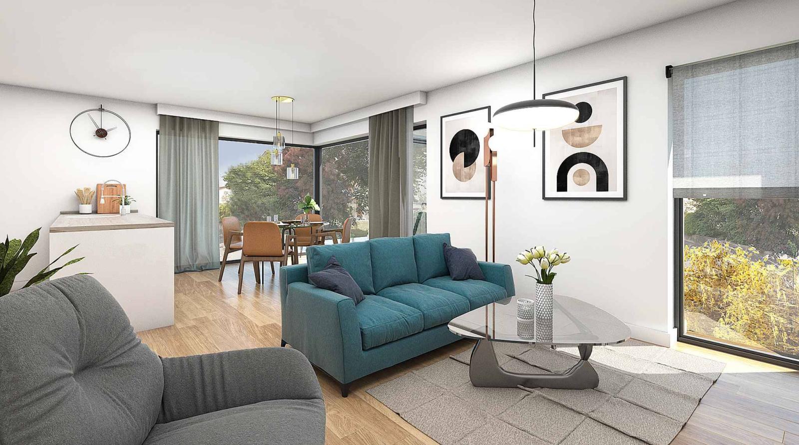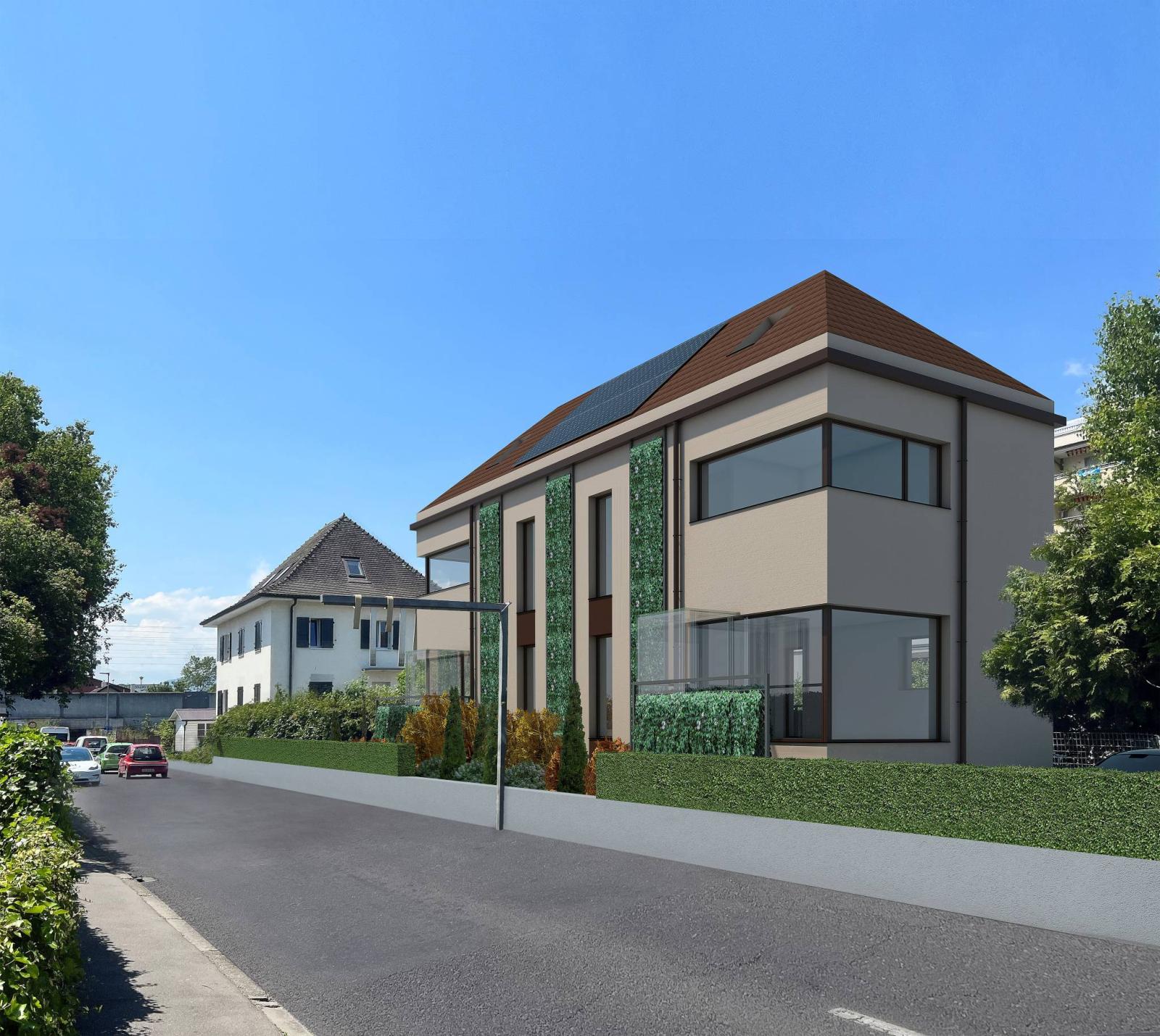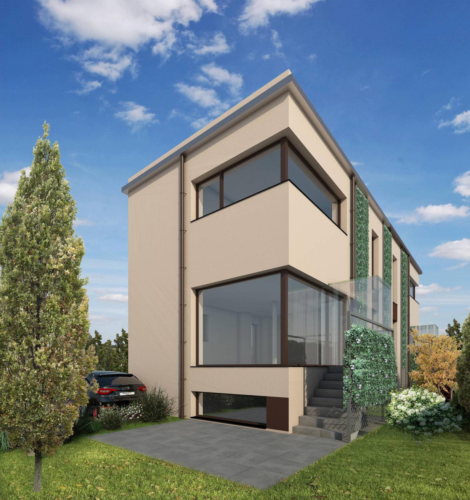 Questa unica villa bifamiliare, progettata per coniugare comfort moderno ed eccezionali prestazioni energetiche, è immersa in un ambiente tranquillo, a pochi minuti dai servizi e dai trasporti.
