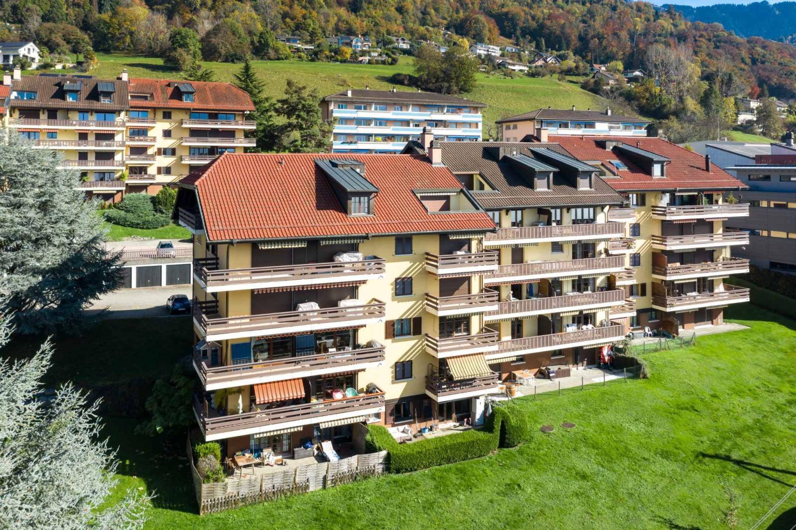 Questo bellissimo appartamento di 2,5 locali con ampio balcone si trova a Chernex al 1° piano di una bella palazzina DPI molto ben tenuta, costruita nel 1982, in un contesto tranquillo e verdeggiante.