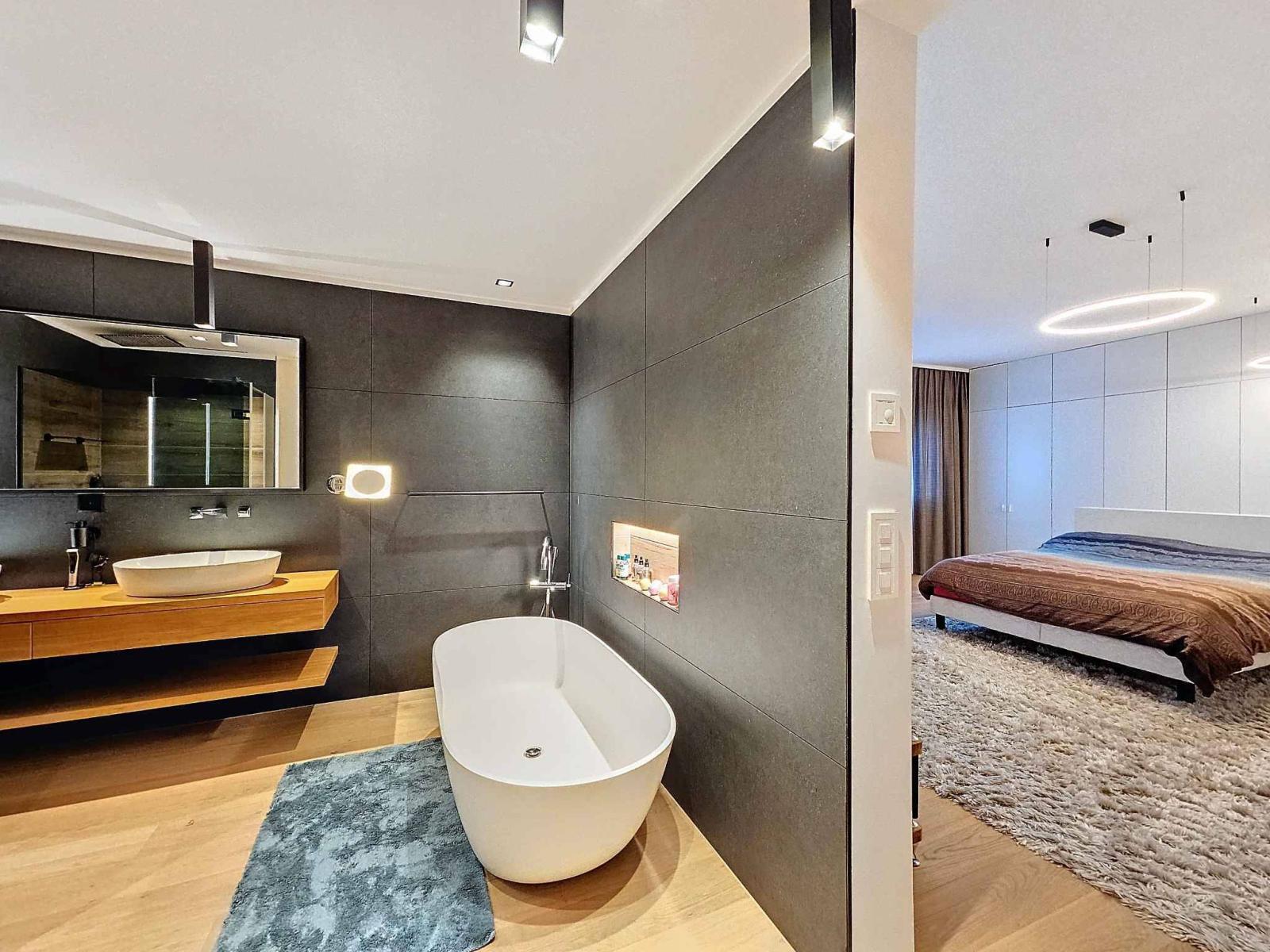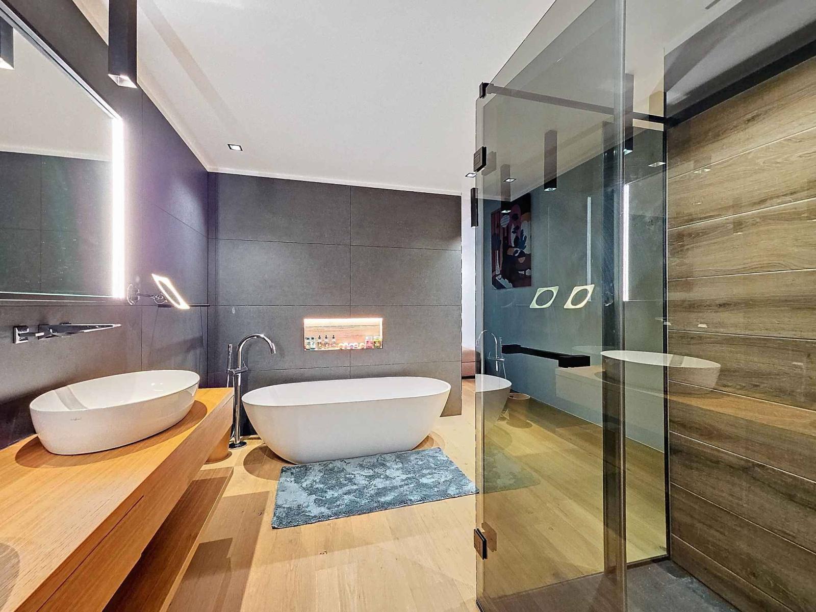 Si tratta di 144 m² utili (135,2 m² di superficie abitabile senza ufficio) completamente ristrutturato nel 2023: tecnicamente (tripli vetri PVC/Alu, elettricità, tinteggiatura, pavimento in rovere, apparecchiature MIELE, domotica, impianto di allarme, tapparelle elettriche, fibra ottica, prese RJ45, irrigazione automatica, ecc.) combinando materiali di fascia alta e un design unico con i codici del lusso (illuminazione personalizzata, cucina attrezzata spaziosa ed elegante, bagno ultramoderno)