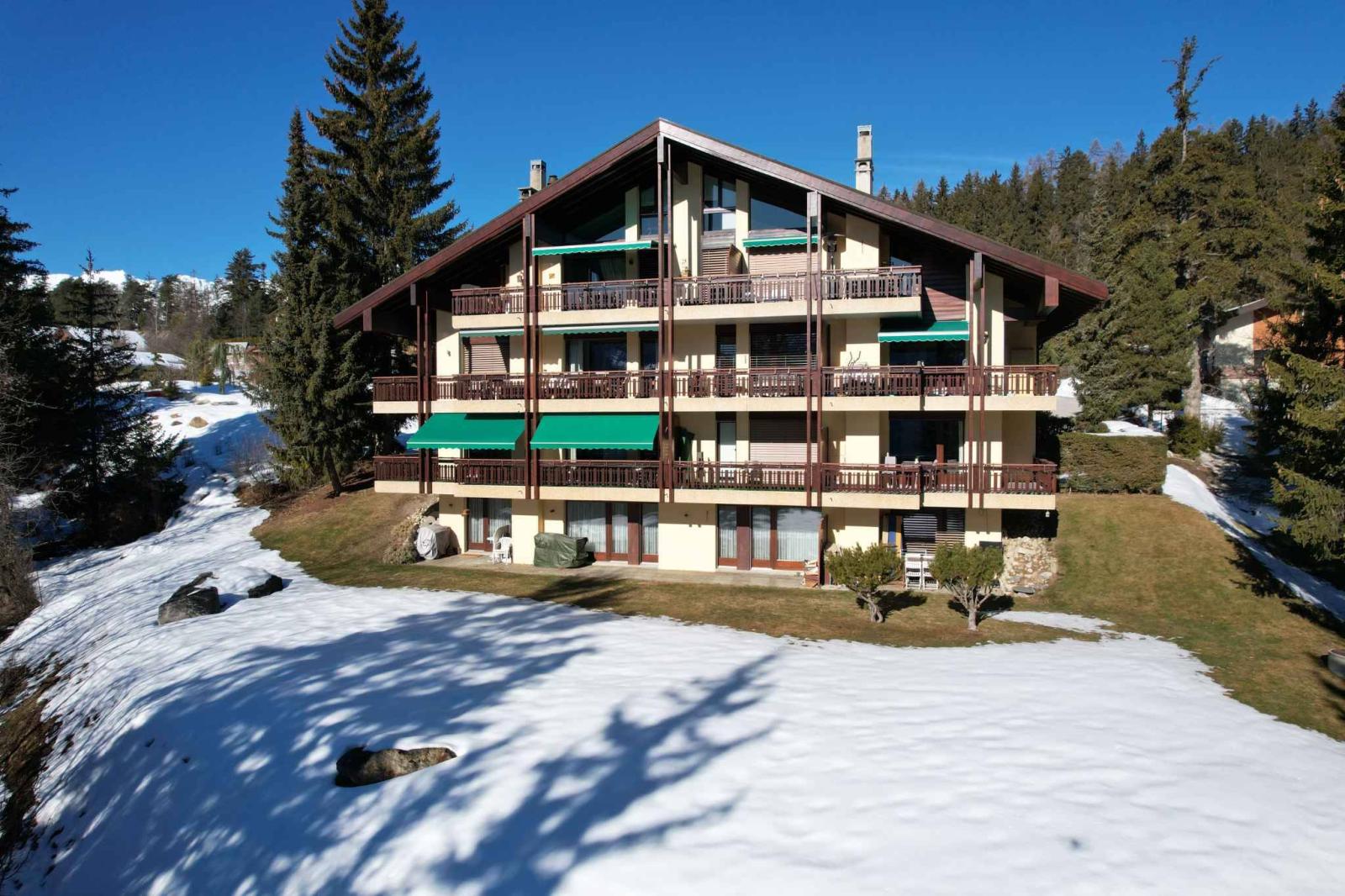 L'appartamento, trasversale e angolare, in perfette condizioni, gode di una bellissima vista sulle montagne e sulla natura ma anche di un giardino privato esposto a est e di un ampio balcone. Ideale per soggiorni sull'Altopiano.