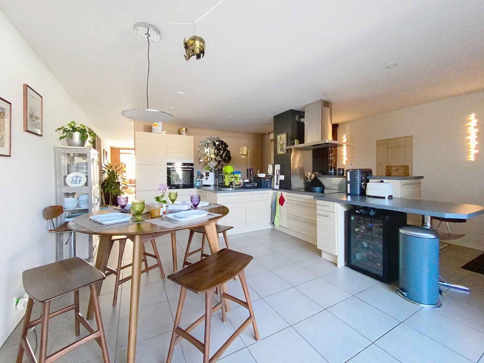Il piano terra è composto da un ingresso, una grande cucina/sala da pranzo completamente attrezzata con accesso al giardino, un bel soggiorno che si apre su una loggia coperta di 36 m2 che può essere chiusa e dà accesso al giardino, un bagno per gli ospiti, tre camere da letto, di cui una con bagno interno, e un bagno.