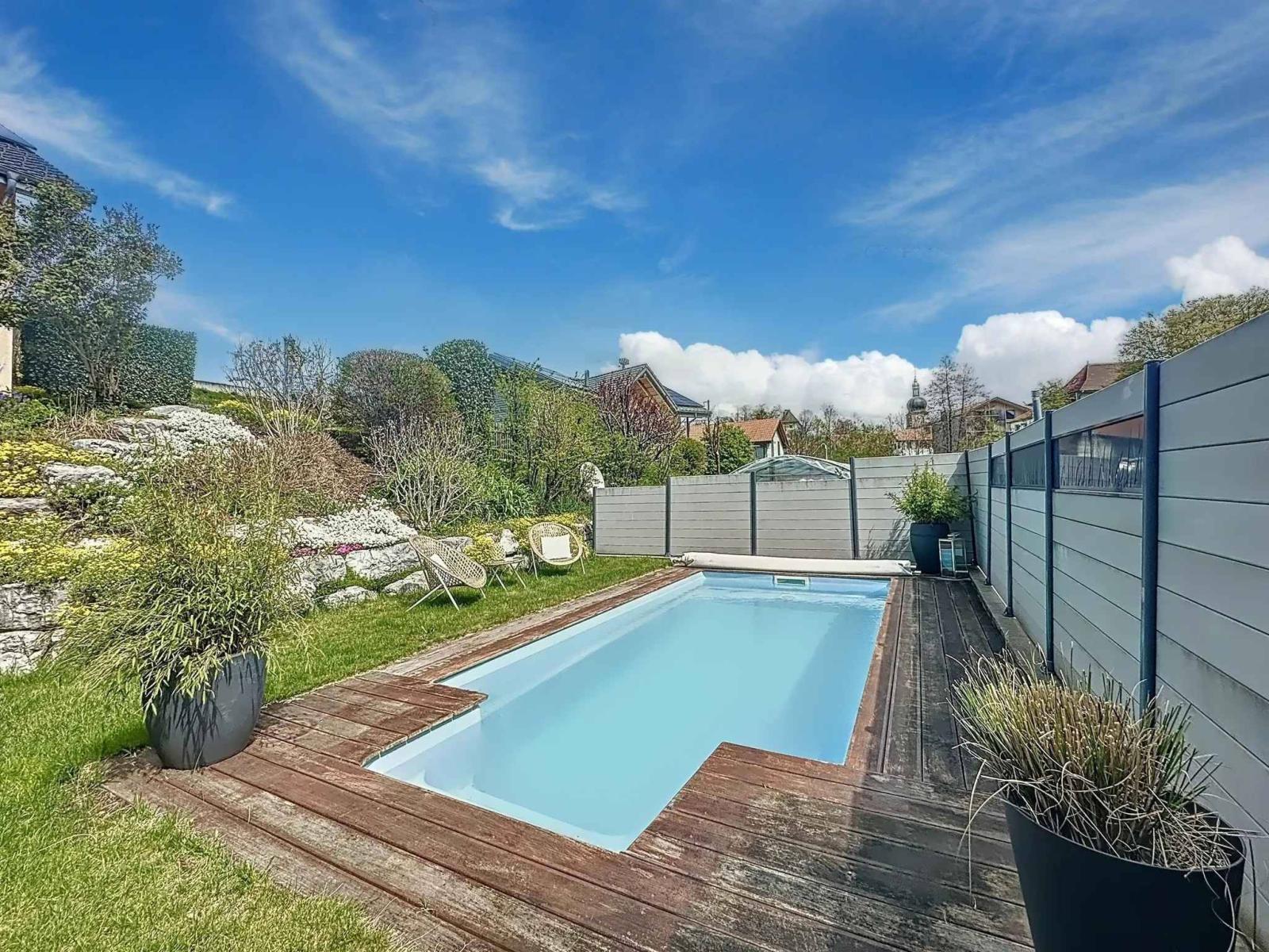 All'esterno, diverse terrazze e una piscina interrata riscaldata da una pompa di calore permettono di godere delle belle giornate in un ambiente piacevole. Il seminterrato ospita invece una cantina, una lavanderia e un ulteriore locale attualmente adibito a sala relax e TV.