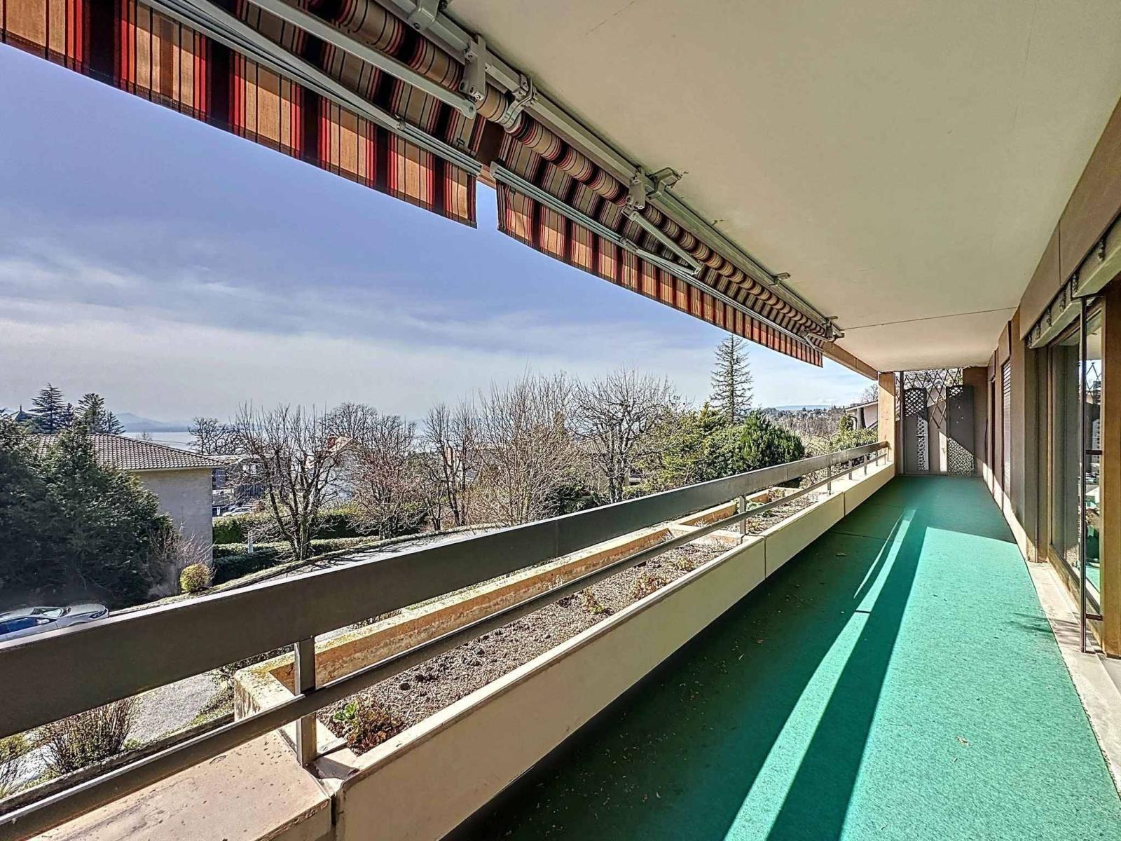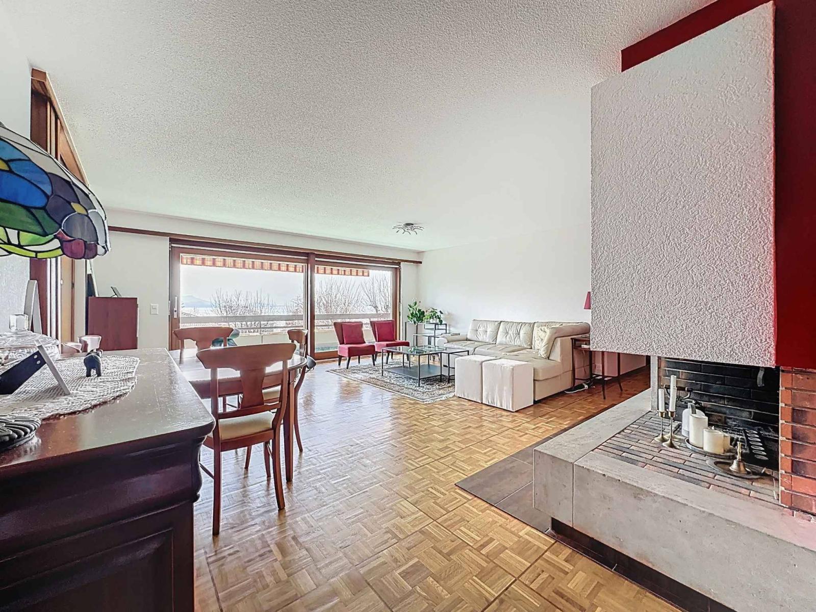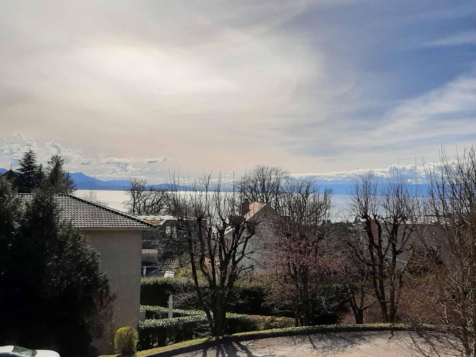 Il suo ampio spazio abitativo, decorato con un elegante camino, si estende su un grande balcone di 30 m², offrendo una vista libera sul lago di Ginevra (Evian e St-Gingolphe)