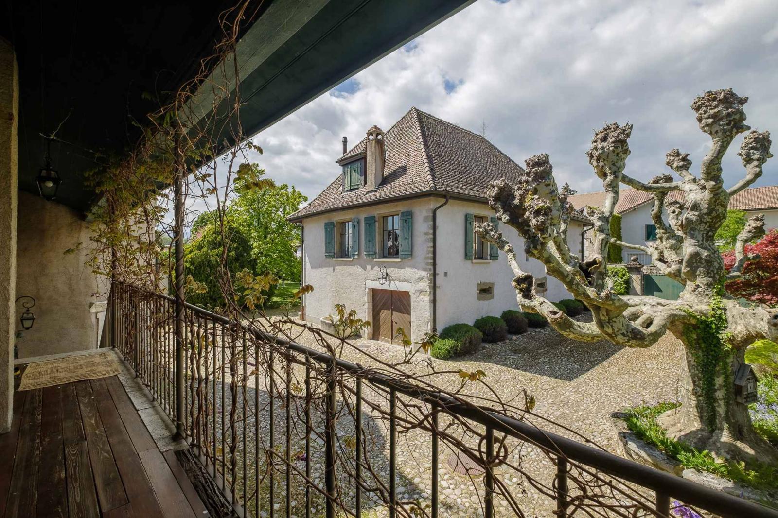 Fin dall'ingresso, il fascino è evidente: pietra a vista, torretta e camino d'epoca, volumi generosi e materiali autentici conferiscono a questa proprietà un carattere unico e senza tempo.