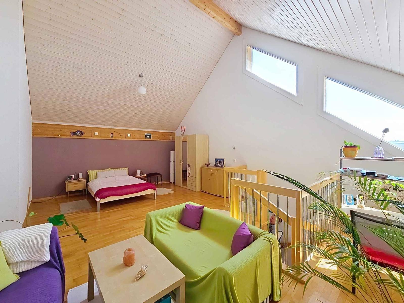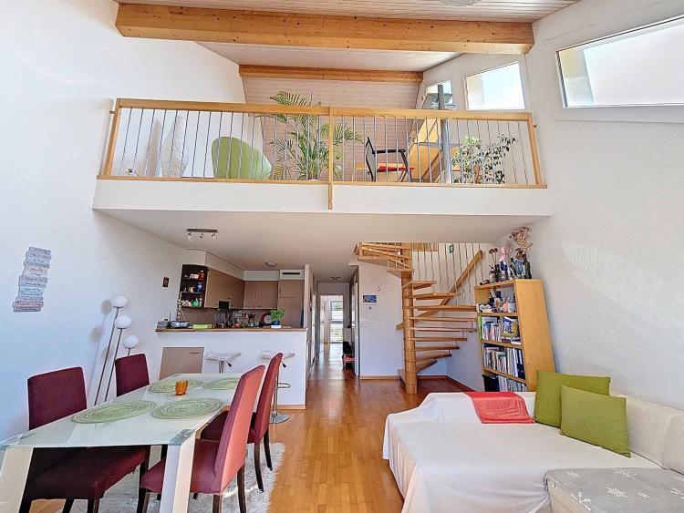 Situato al 1° e ultimo piano di un PPE di 8 lotti, questo appartamento di 3,5 locali (94 m² ponderati), comprensivo di una camera da letto chiusa e di una camera da letto soppalcata, beneficia di ampi volumi fino a 5 metri di altezza del soffitto al massimo. Il piano comprendente soggiorno-cucina, bagno/WC/lavabo, camera da letto, è di circa 62 m². Al piano superiore, il soppalco comprende la zona notte e un angolo studio, per una superficie di circa 30 m².