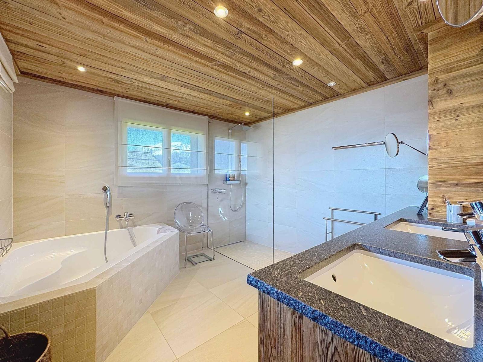 Dieses gepflegte Chalet erstreckt sich über 3 Ebenen und befindet sich mit seiner traditionellen Architektur aus Altholz und Schieferdach in einem ausgezeichneten Allgemeinzustand. Es ist hell und geräumig und verfügt über schöne Empfangsräume, 5 bis 6 Schlafzimmer, einen wunderschön angelegten Garten mit Whirlpool und eine Doppelgarage.