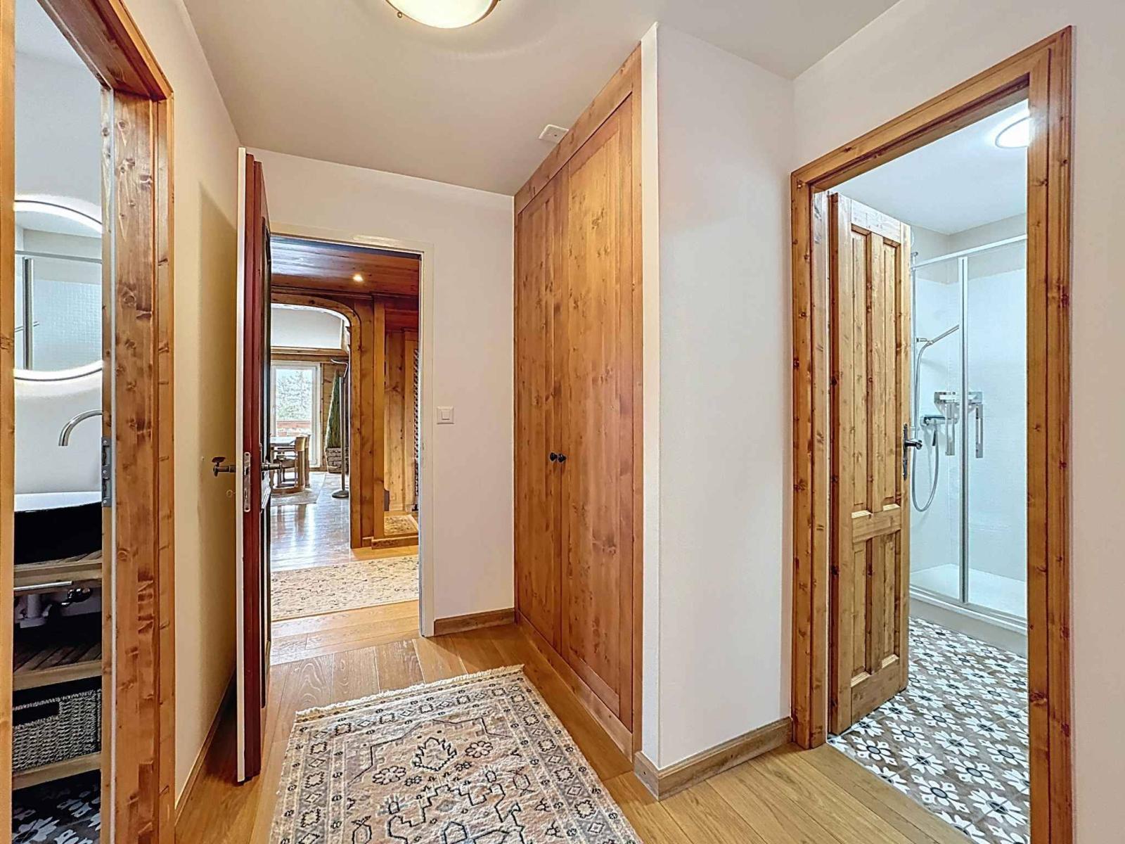 L'appartamento principale di 4,5 locali dispone di una superficie abitabile di 148 m2 + balconi. Viene venduto con un monolocale annesso, esposto a sud, di 22m2 + balcone (ideale per rendita, famiglia o amici), tre posti auto (extra) e due cantine.