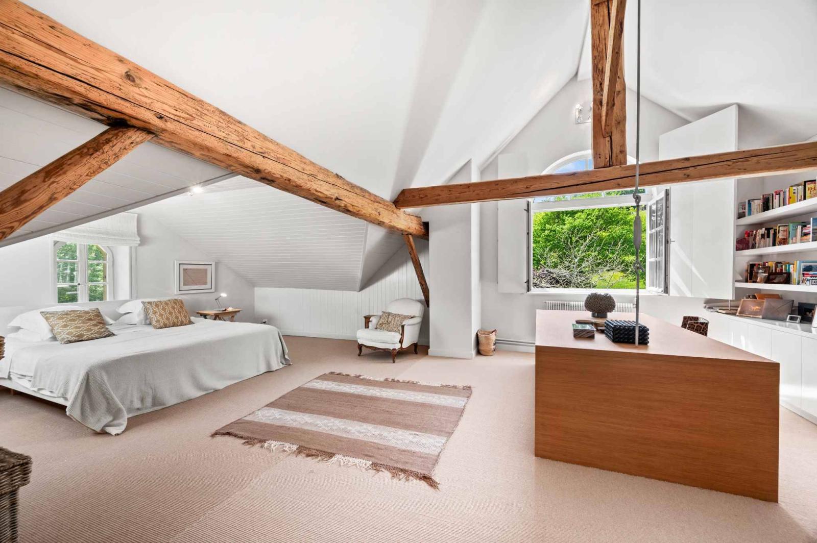 Con 10,5 locali, questa casa di 350 m² offre cinque camere da letto, tra cui una suite padronale in mansarda con cabina armadio e bagno privato con doccia, oltre a due bagni e due WC separati. Gli interni presentano travi a vista, pavimenti in parquet di rovere, pavimenti in pietra naturale e un arredamento sobrio e raffinato, pensato per durare nel tempo.