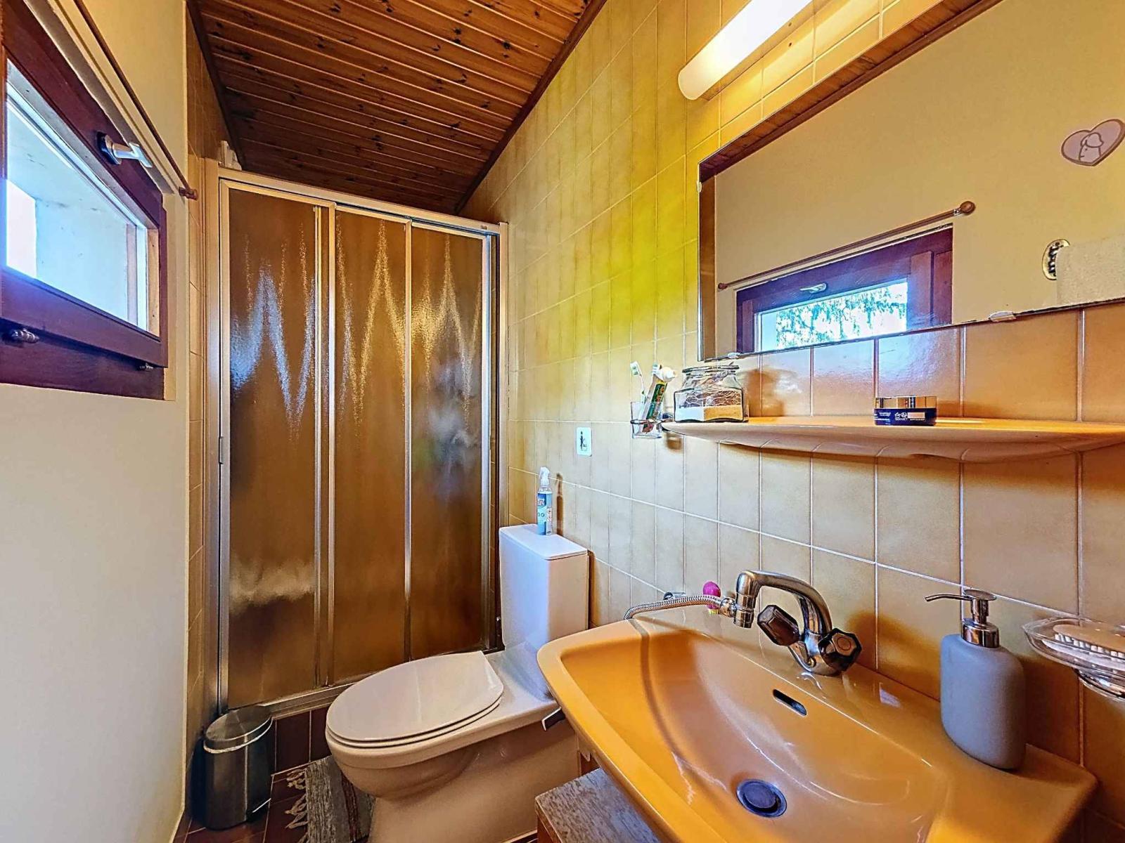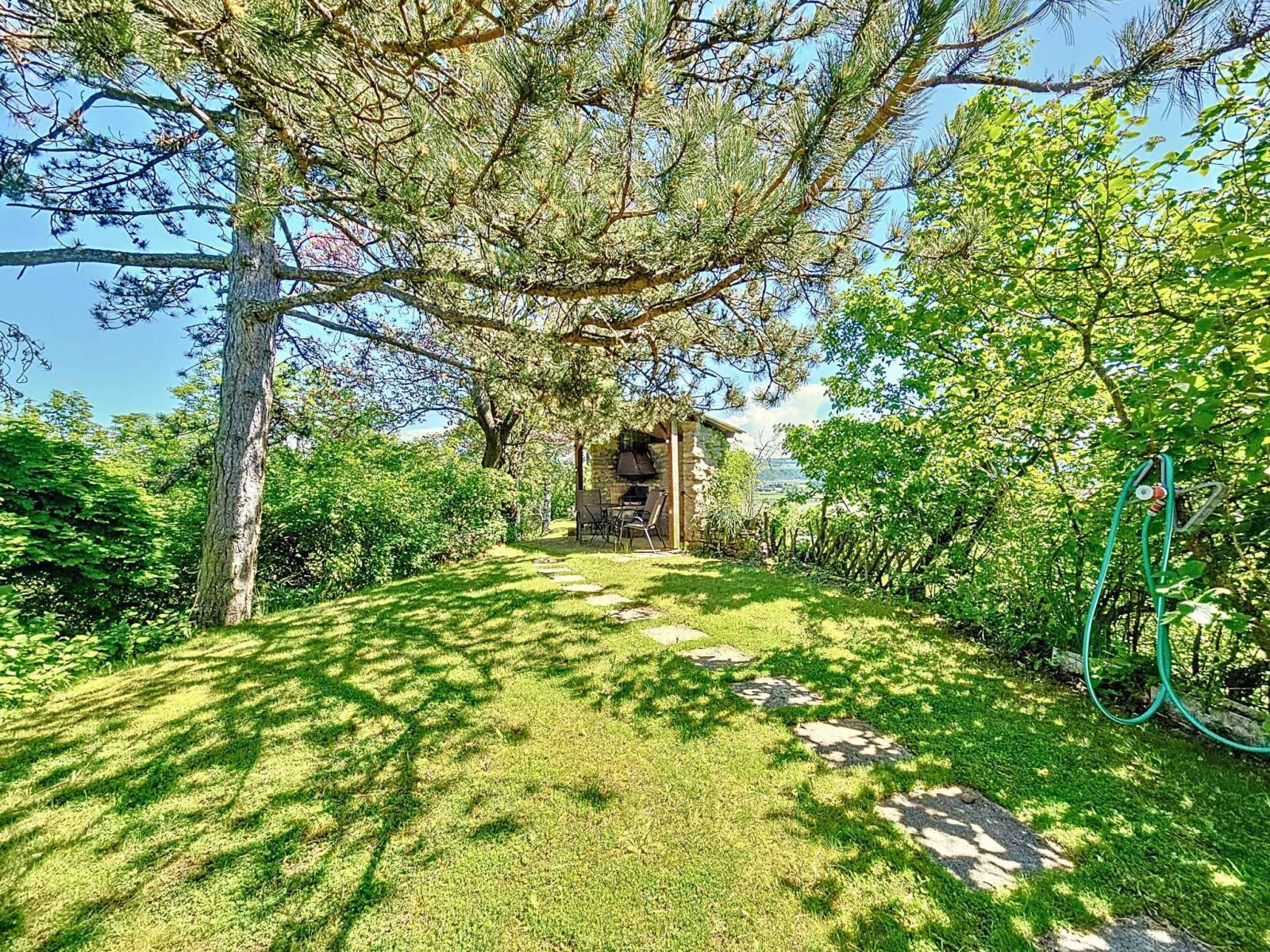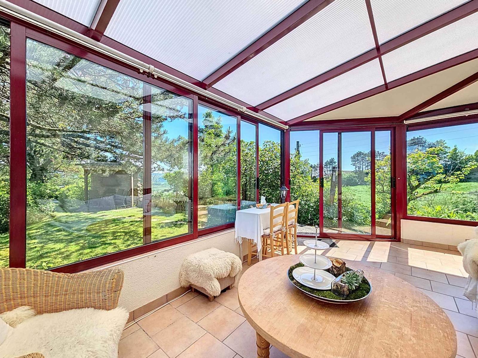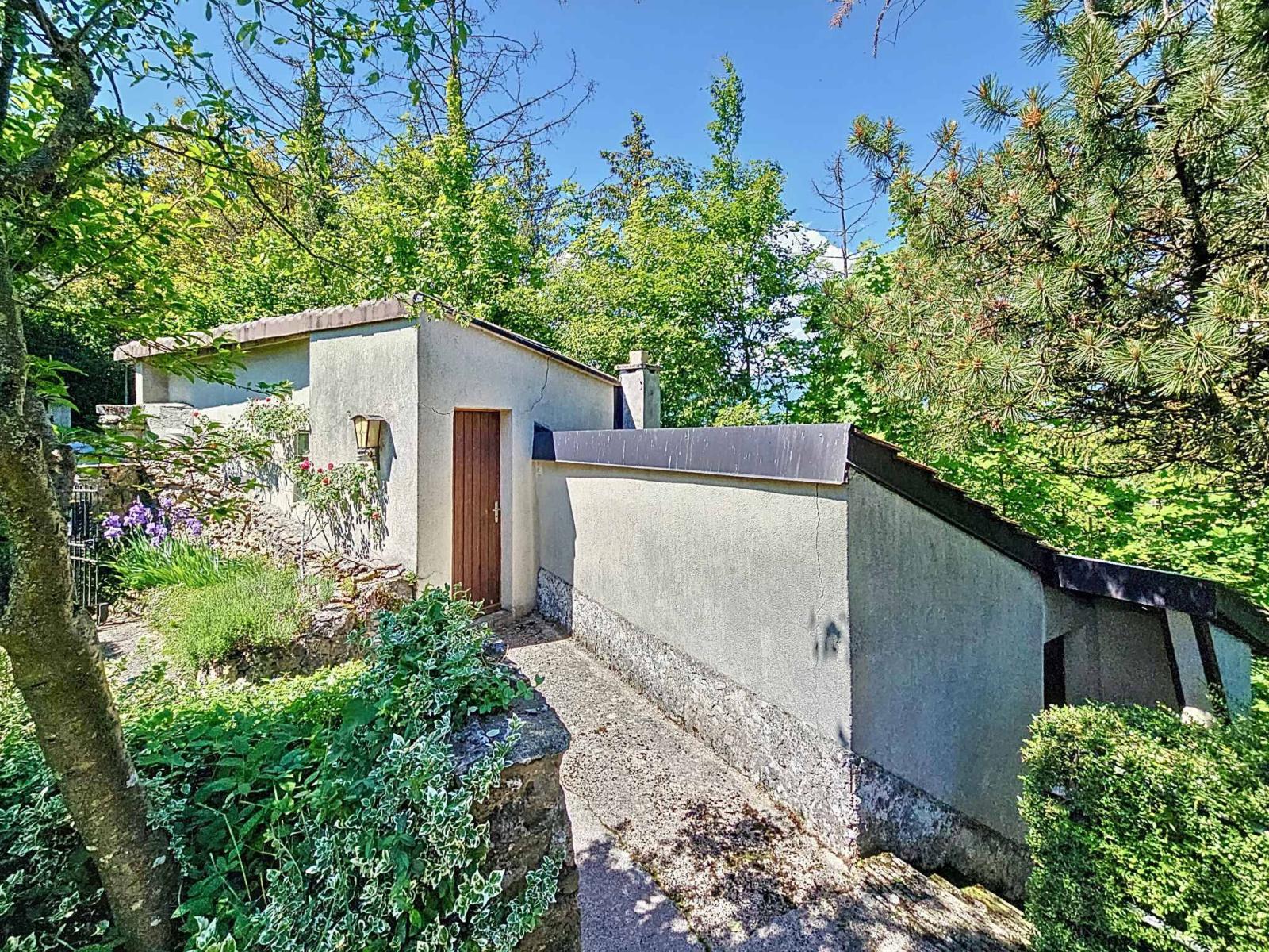 All'esterno, un'ampia terrazza dà accesso a un vasto giardino alberato con capanno. Un garage, una legnaia e una cantina completano la proprietà.