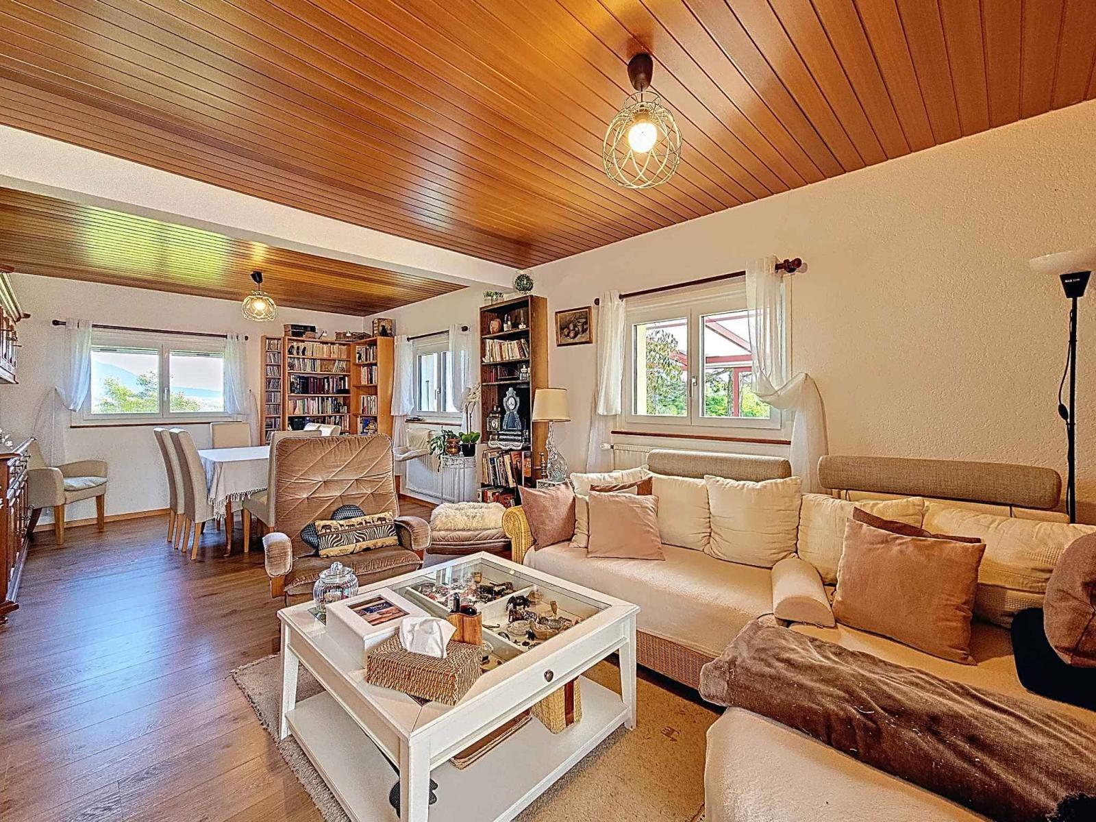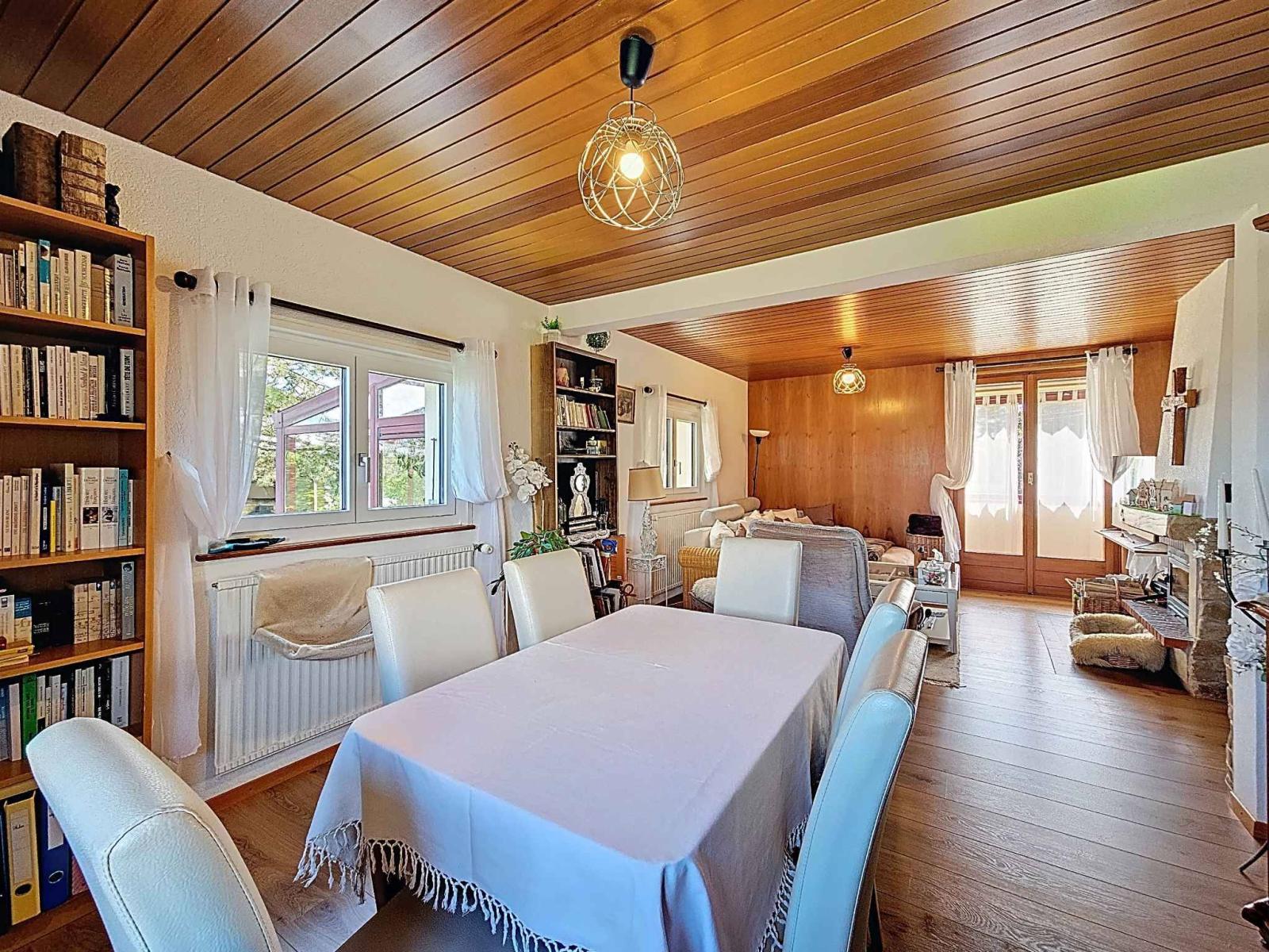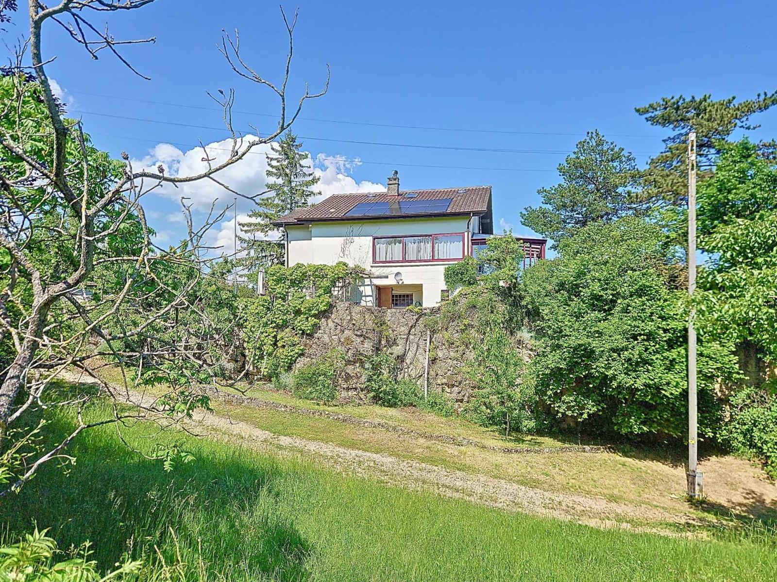 Costruita nel 1954 su un terreno di 1.022 m², questa casa indipendente di 4,5 locali offre circa 115 m² di superficie abitabile distribuita su tre livelli. Ampliata e mantenuta con cura nel corso degli anni, coniuga fascino, comfort ed efficienza energetica.
