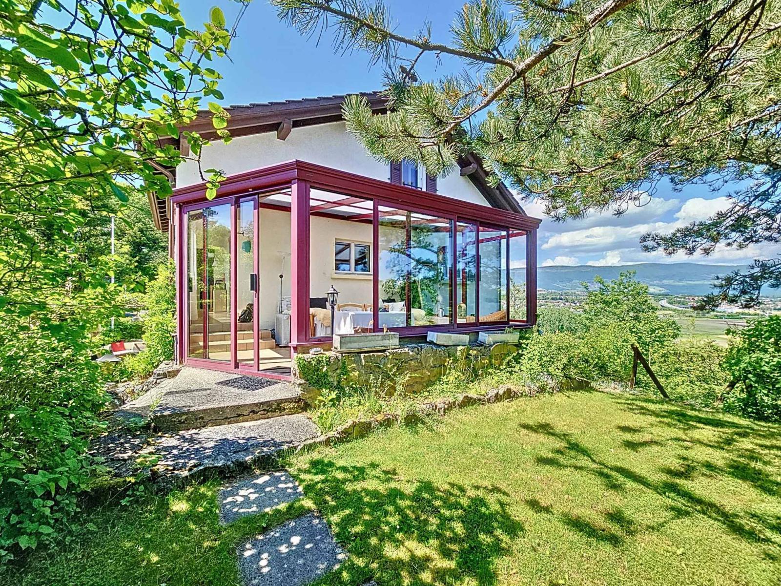 Situata in posizione dominante su una piccola collina, la proprietà gode di una straordinaria vista panoramica sul lago, sulla natura circostante, sulle montagne e sulla città di Yverdon-les-Bains.