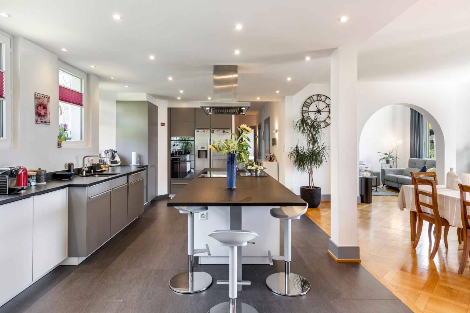 Suddiviso in tre appartamenti indipendenti (1 di 4,5 locali, 1 di 3,5 locali e 1 di 2,5 locali), offre un ottimo potenziale di sviluppo con, in aggiunta, una camera da letto aggiuntiva e un ufficio. Ideale per una famiglia multigenerazionale, un investitore o una residenza principale con reddito da locazione. Attualmente l'appartamento di 4,5 locali è occupato dai proprietari, mentre gli altri due appartamenti sono affittati (contratti di locazione disponibili su richiesta).