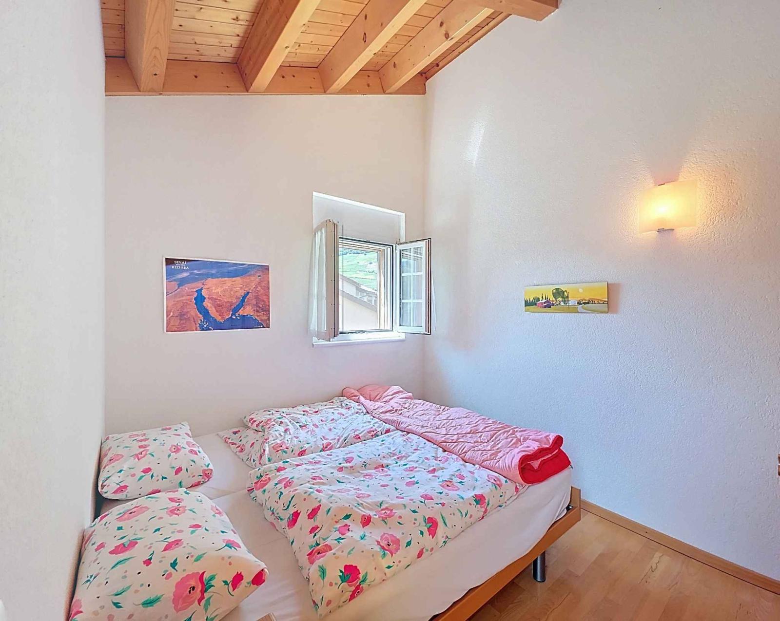 Il soggiorno con cucina a vista, di circa 62 m², si apre su una terrazza esposta a sud, che offre una splendida vista libera sulle montagne del Vallese, perfetta per godersi il sole fin dal mattino. Offre inoltre accesso a un piccolo balcone esposto a ovest, ideale per un momento di tranquillità a fine giornata.