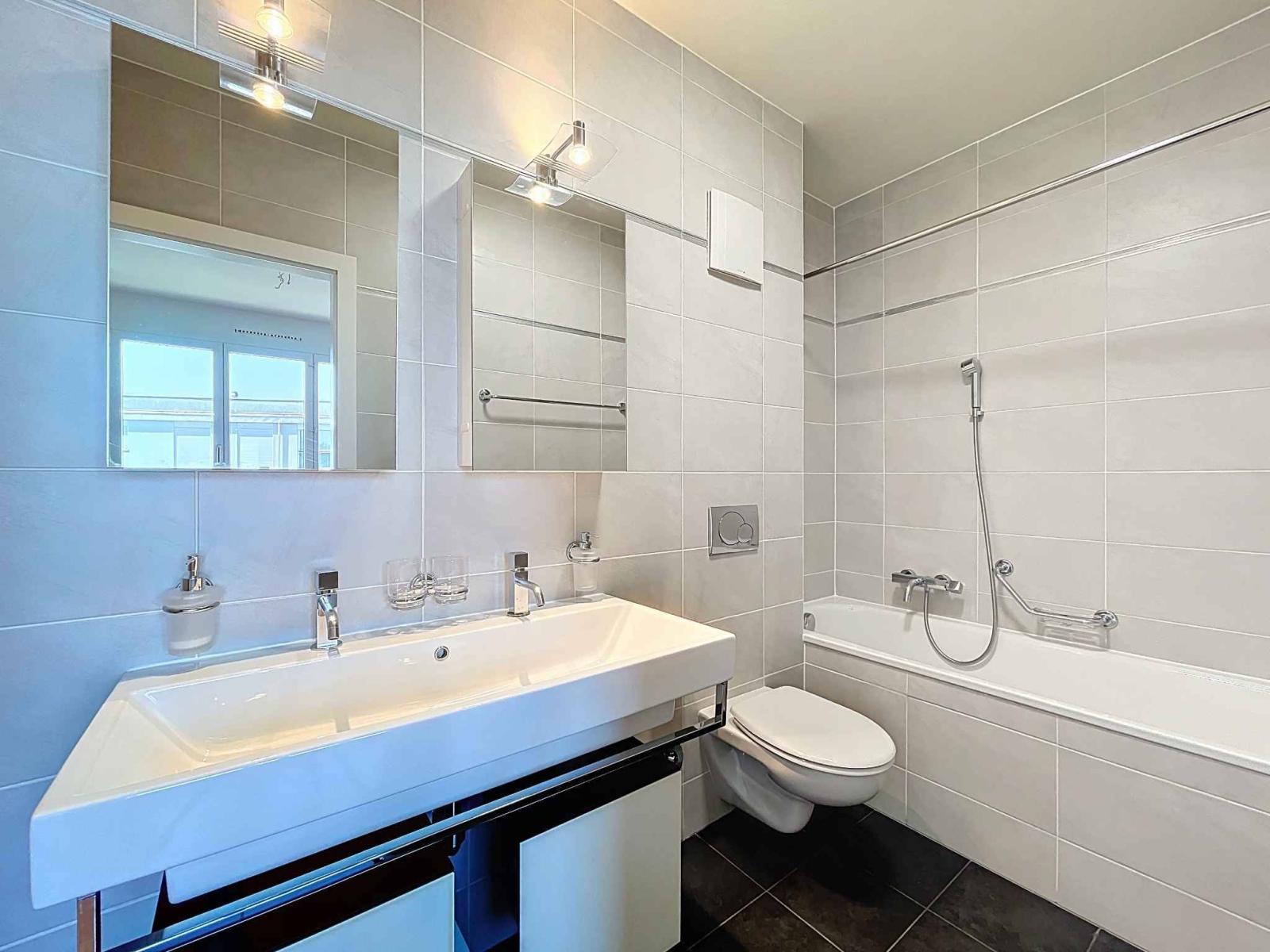 Questo appartamento di 4,5 locali offre una superficie complessiva di circa 104 m², di cui 95 m² abitabili e un ampio balcone-terrazzo di 18 m², con una distribuzione armoniosa e inondata di luce. L'ingresso conduce a un ampio soggiorno, illuminato da ampie vetrate che offrono una piacevole vista sul lago.