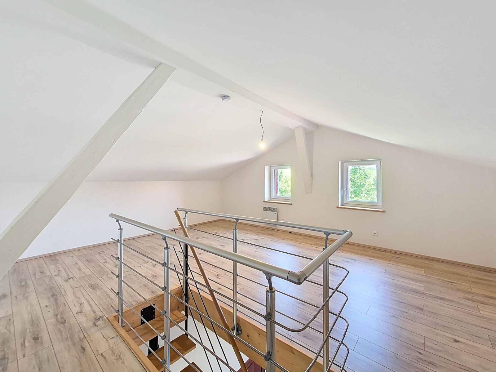 Appartamento duplex di 4,5 locali (piano): accessibile da due ingressi, uno dei quali confina con l'ampio fienile utilizzabile, offre un ampio soggiorno con accesso a una camera da letto soppalcata, una cucina completamente attrezzata, un bagno con doccia e due camere da letto aggiuntive.