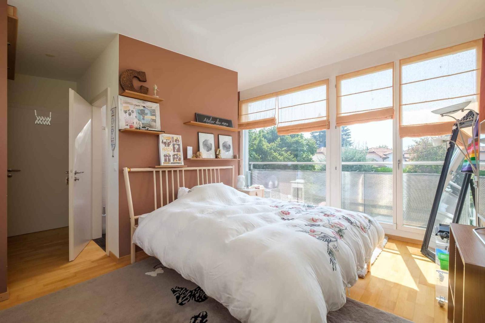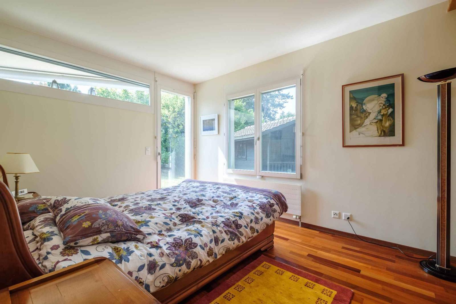 Il piano terra è composto da un ingresso con guardaroba, un soggiorno con camino, una sala da pranzo e una cucina aperta sul soggiorno. Completano questo livello una camera da letto principale con armadi a muro e bagno privato, accesso all'esterno, una seconda camera da letto con armadi, bagno privato e accesso all'esterno, oltre a un locale adibito a studio/cabina armadio.