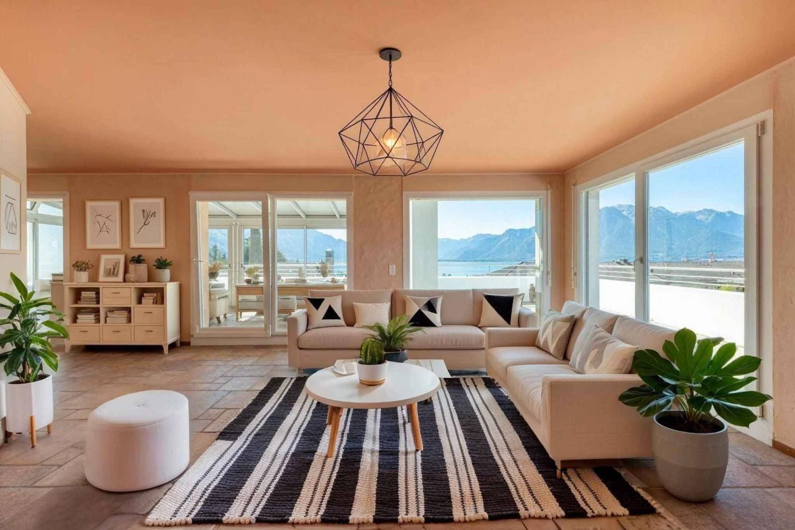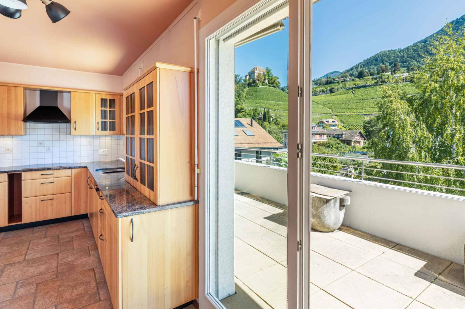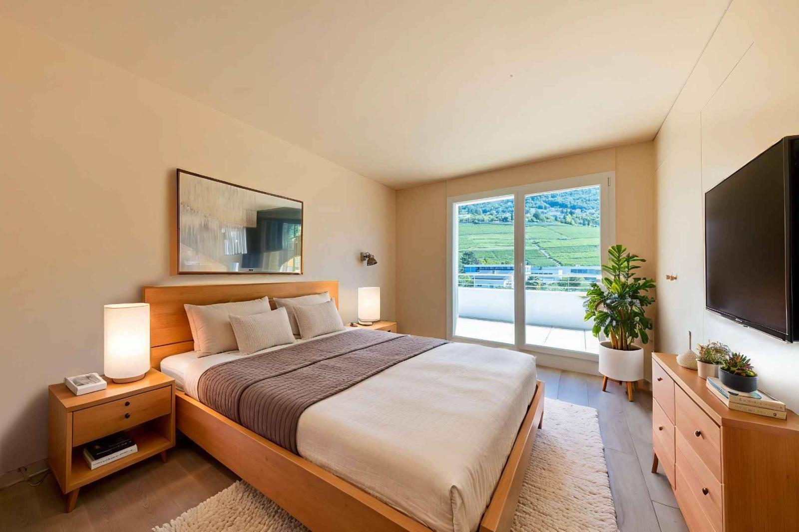 L'appartamento dispone di una straordinaria terrazza a 360 gradi di quasi 130 m², che offre una vista panoramica mozzafiato sul Lago di Ginevra, sui vigneti circostanti e sulle Alpi.