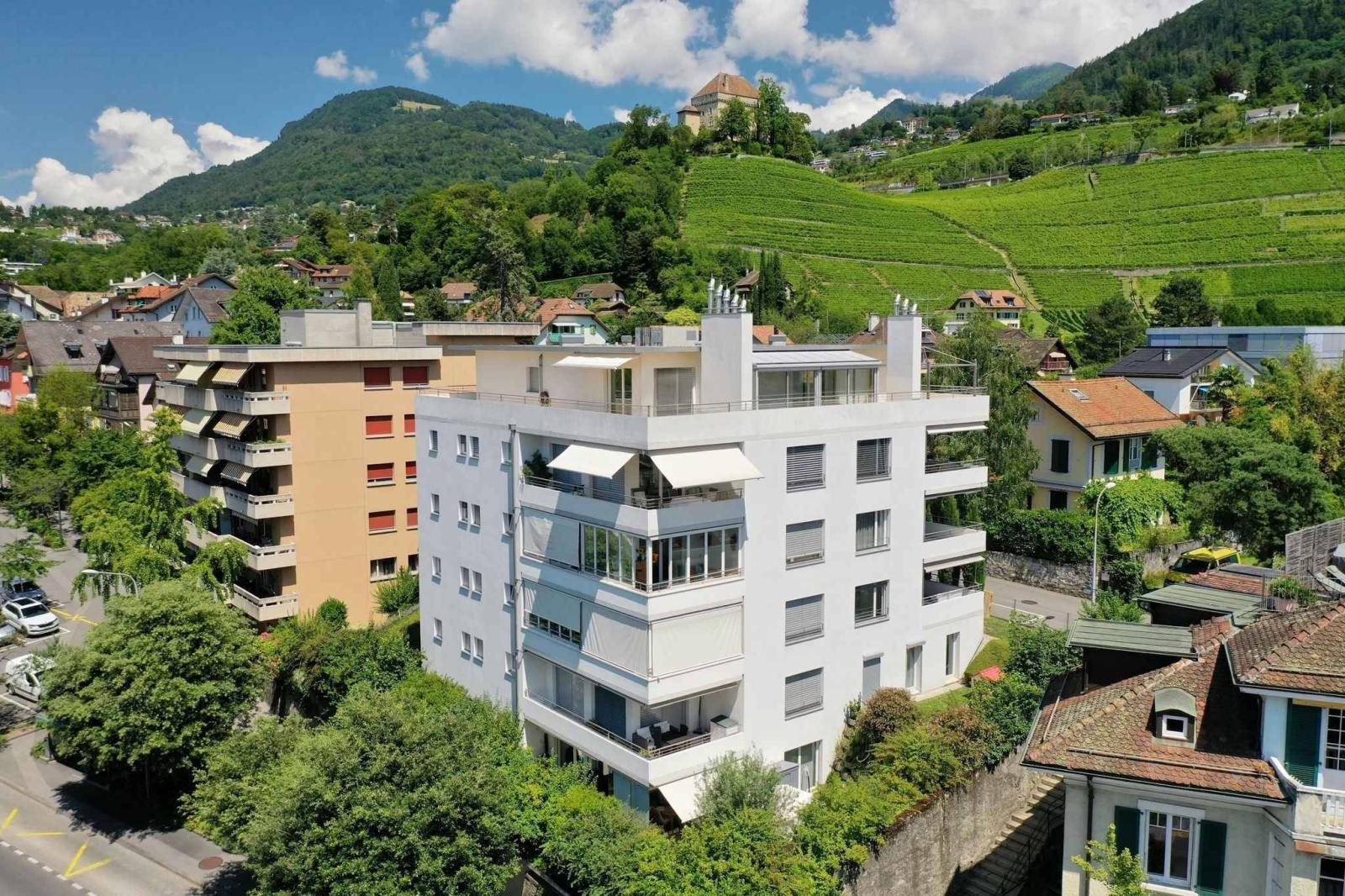 Con una superficie ponderata di circa 155 m², di cui quasi 130 m² abitabili, gode di una posizione ideale a meno di cinque minuti dal centro di Montreux e a soli 600 metri dal famoso Quai des Fleurs sulla Riviera.