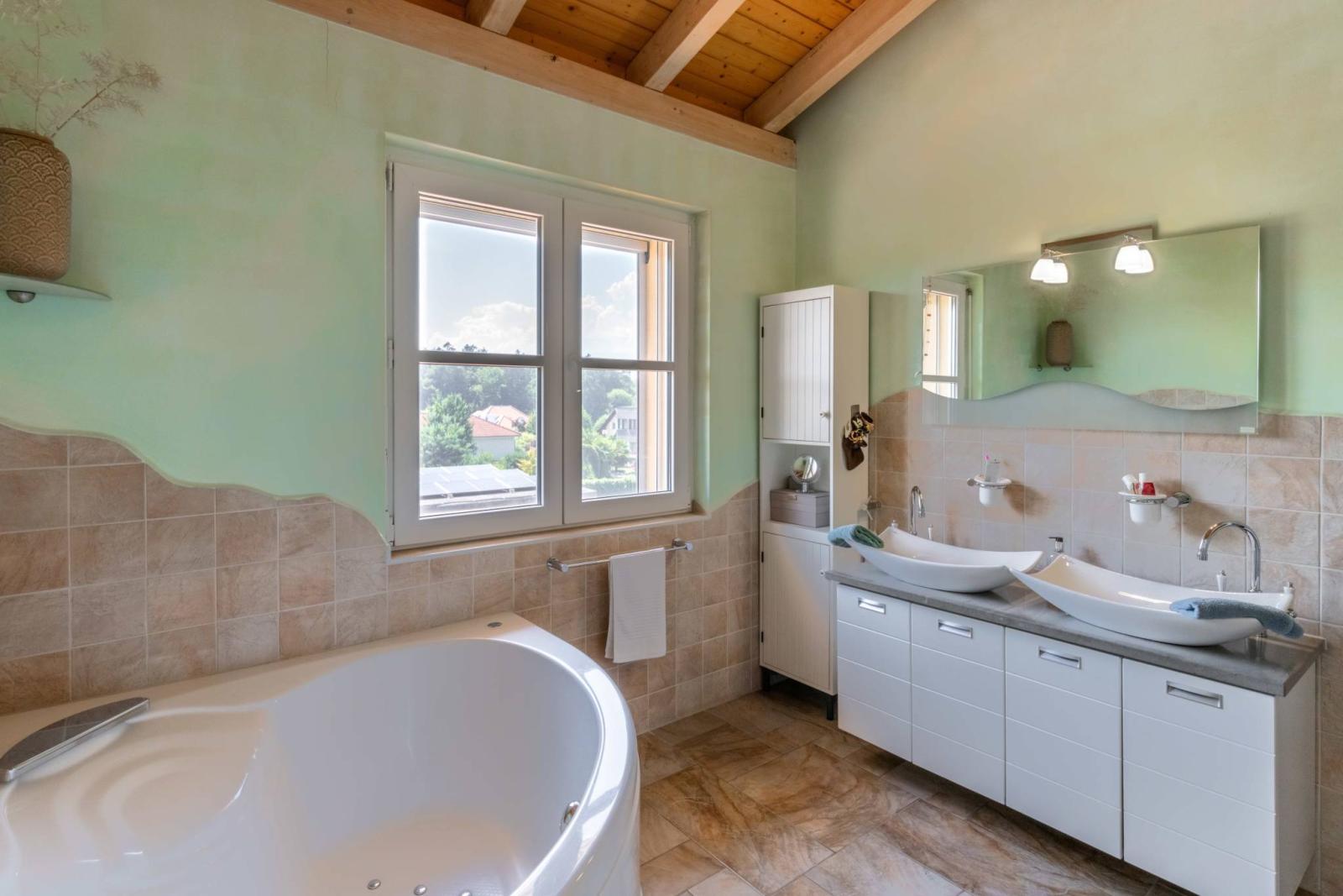 - Salle de bains douche italienne, baignoire d'angle avec hydro-massage, WC,lavabo