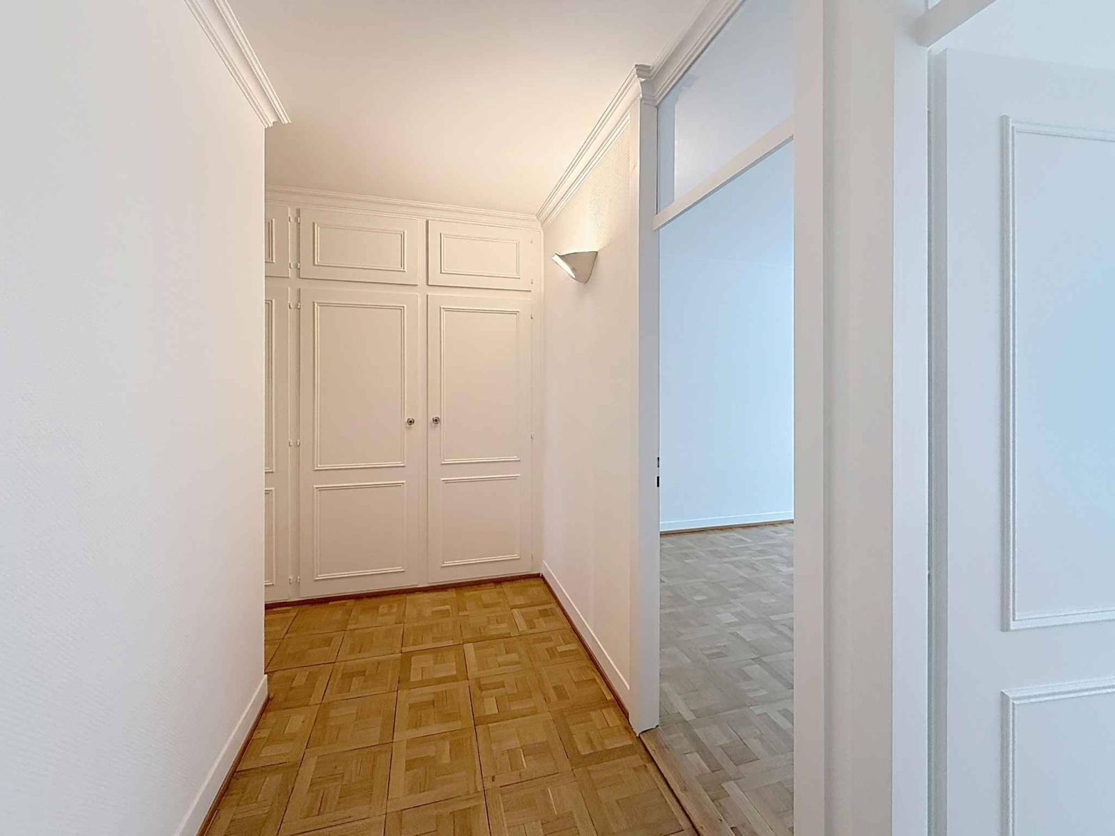 L'appartamento si apre su un ampio ingresso dotato di numerosi armadi a muro.