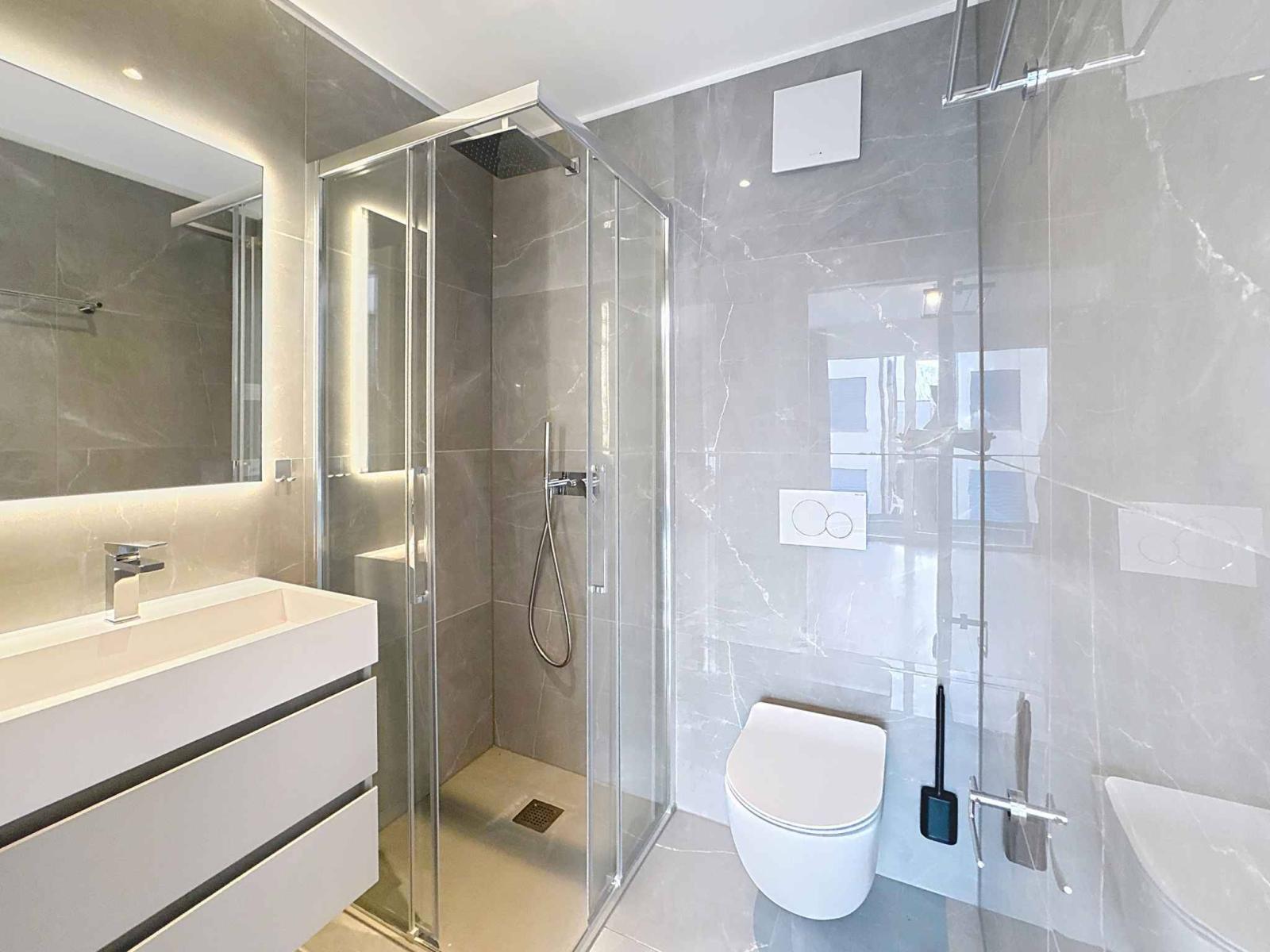 La zona notte offre tutti i comfort necessari: una camera da letto con bagno privato e doccia, una camera da letto standard ideale per bambini o ospiti, nonché una terza camera da letto modulare, che può essere trasformata in ufficio, camera per bambini o area giochi.
