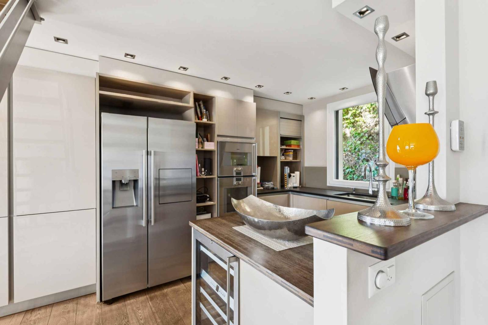 Nel seminterrato, questa proprietà offre anche un carnotzet attrezzato con cucina, una cantina climatizzata e una cantina, fornendo spazi aggiuntivi particolarmente apprezzabili per ricevimenti e ripostigli.