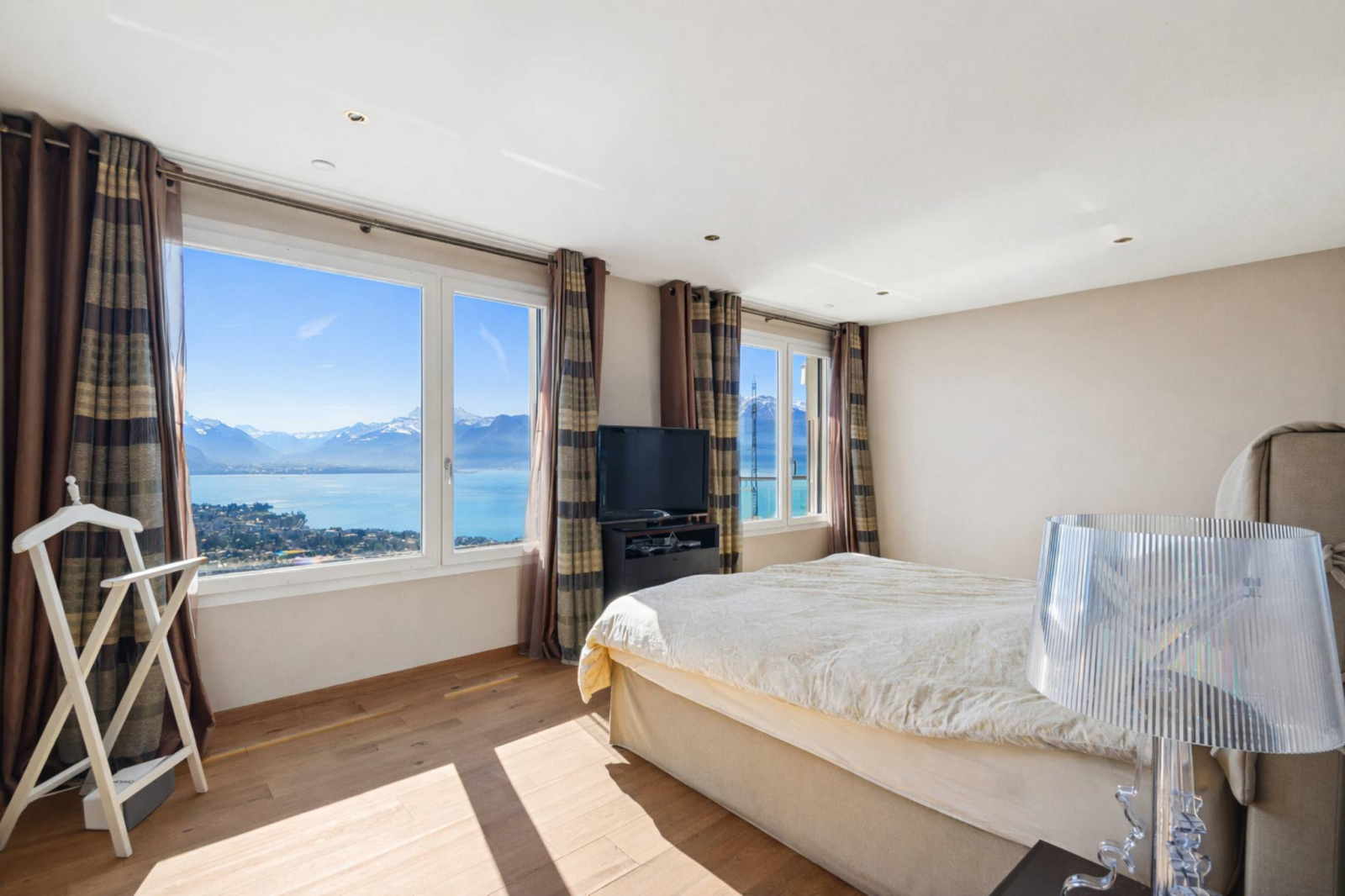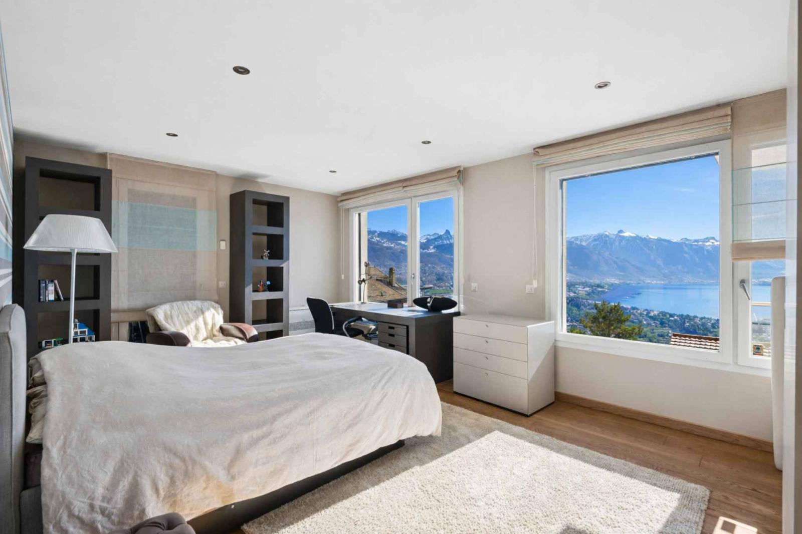 Grazie al suo orientamento a sud, gode di un'illuminazione ottimale durante tutto il giorno, oltre a una vista libera sul Lago di Ginevra e sulle montagne circostanti.