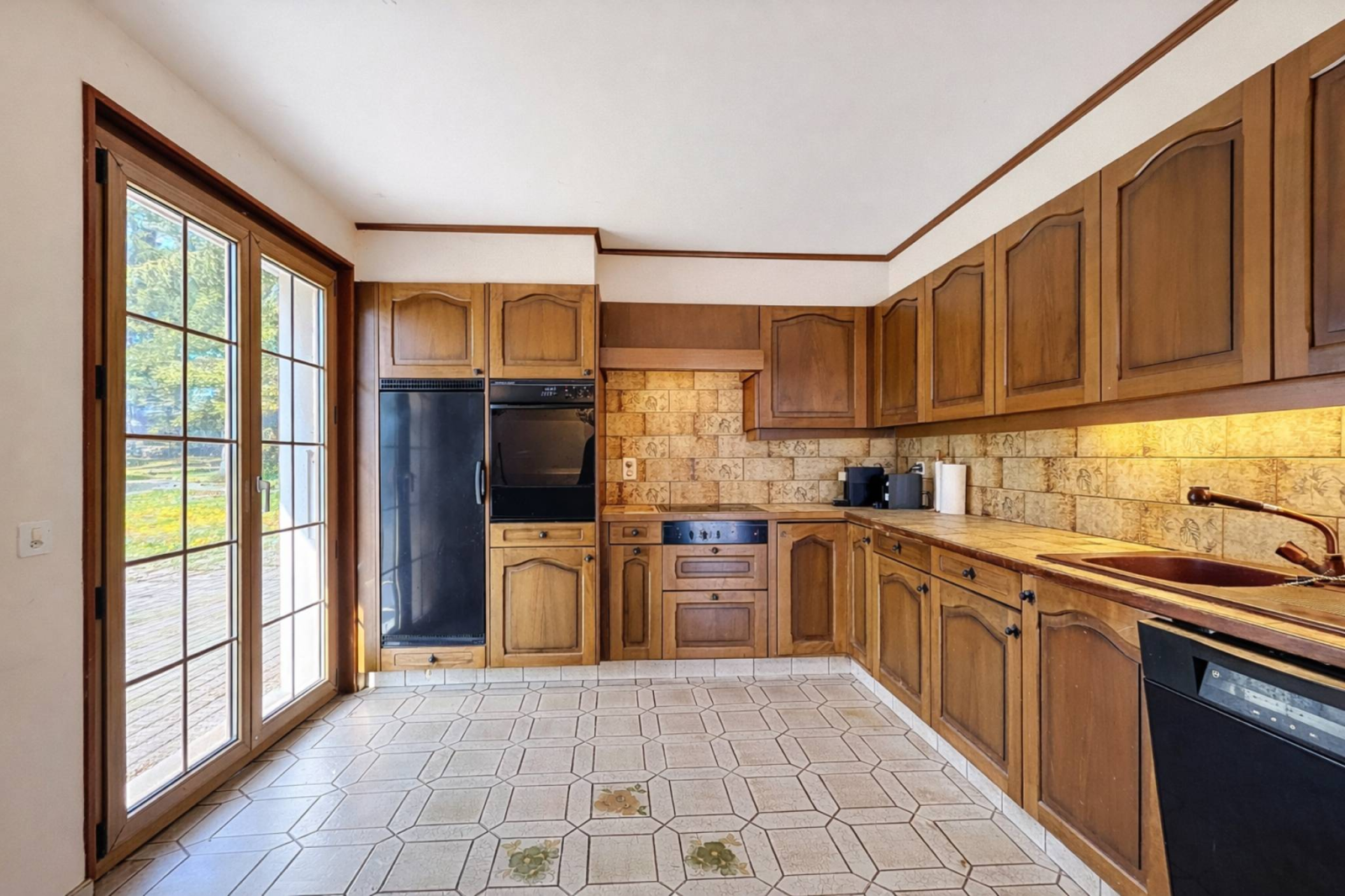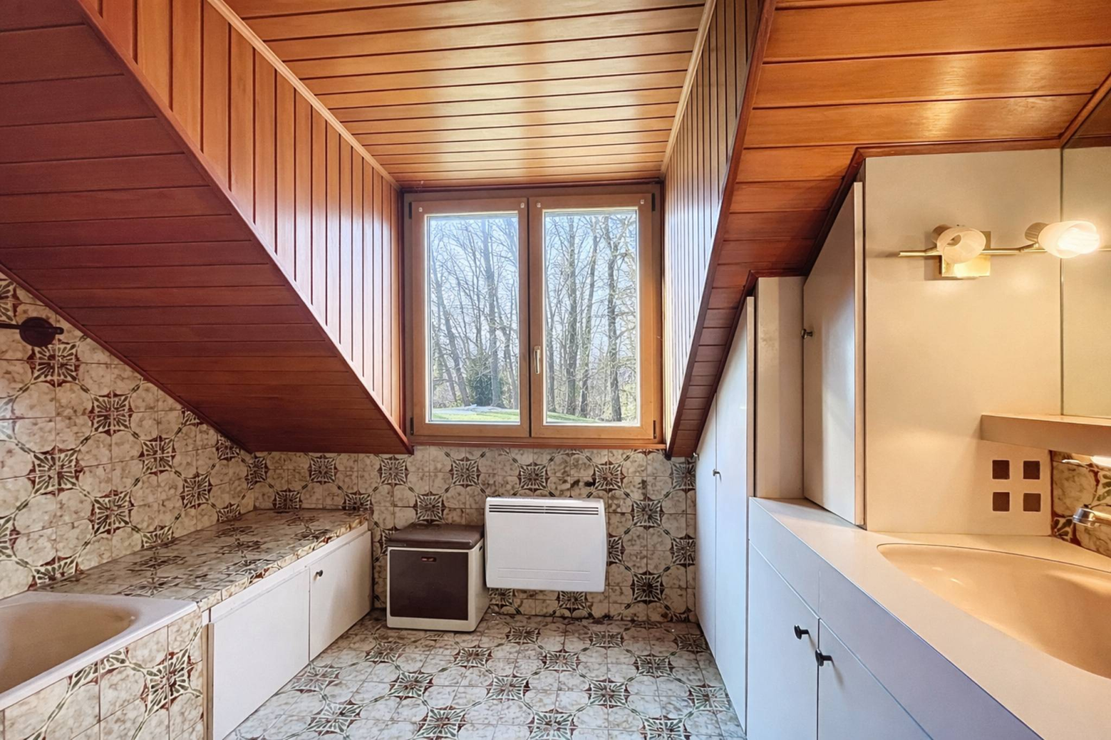 Costruita su un generoso terreno di circa 1.850 m² ai margini del bosco e senza vista panoramica, la proprietà gode di un ampio giardino pianeggiante e alberato, offrendo grandi possibilità di sviluppo, in particolare per una piscina o un futuro ampliamento.